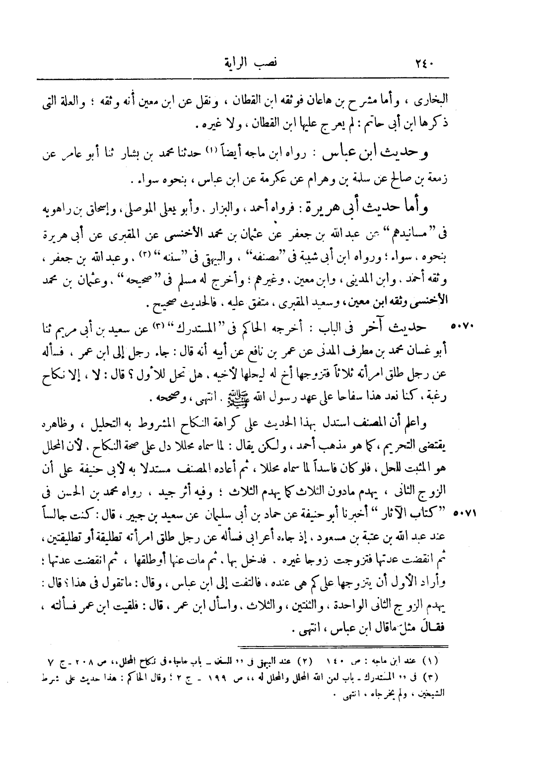 3 في "المستدرك - باب لعن الله المحلل والمحلل له" ص 199 - ج 2، وقال الحاكم: هذا حديث على شرط الشيخين، ولم يخرجاه، انتهى.