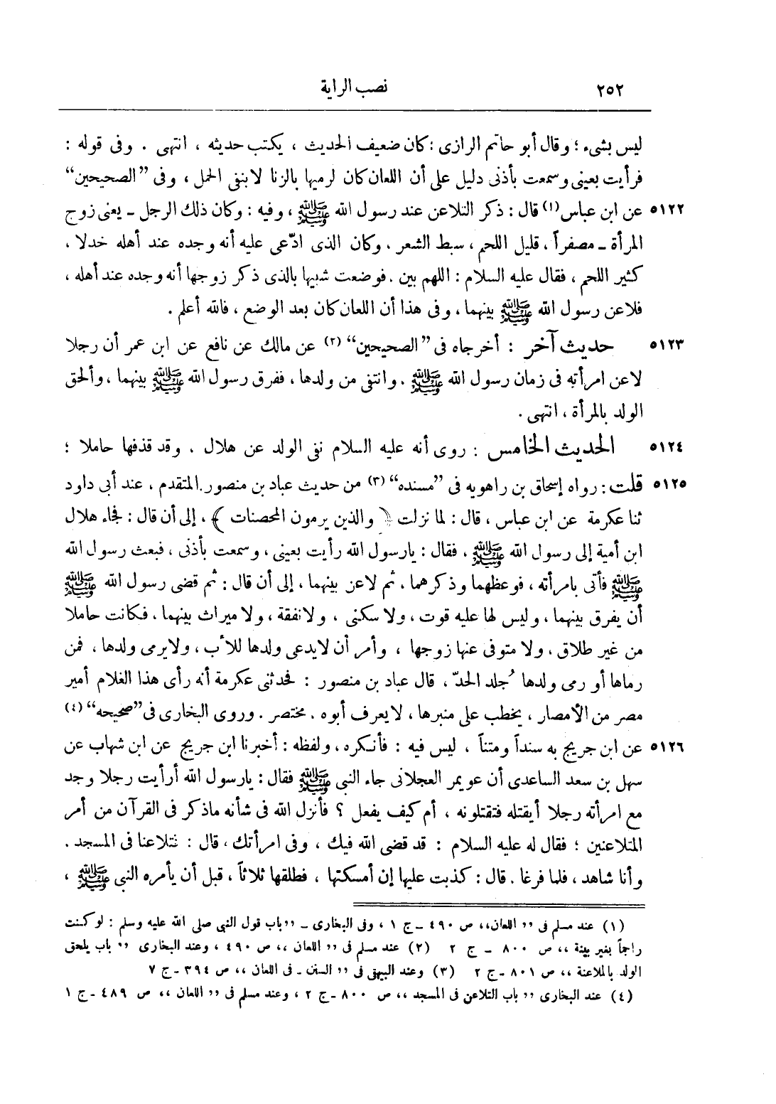 الْحَدِيثُ الْخَامِسُ: رُوِيَ أَنَّهُ عليه السلام نَفَى الْوَلَدَ عَنْ هِلَالٍ، وَقَدْ قَذَفَهَا حَامِلًا، قُلْت: رَوَاهُ إسْحَاقُ بْنُ رَاهْوَيْهِ فِي "مُسْنَدِهِ" 3 فِي حَدِيثِ عَبَّادِ بْنِ مَنْصُورٍ الْمُتَقَدِّمِ، عِنْدَ أَبِي دَاوُد ثَنَا عِكْرِمَةُ عَنْ ابْنِ عَبَّاسٍ، قَالَ: لَمَّا نَزَلَتْ {وَاَلَّذِينَ يَرْمُونَ الْمُحْصَنَاتِ} ، إلَى أَنْ قَالَ: فَجَاءَ هِلَالُ بْنُ أُمَيَّةَ إلَى رَسُولِ اللَّهِ صَلَّى اللَّهُ عَلَيْهِ وَسَلَّمَ، فَقَالَ: يَا رَسُولَ اللَّهِ رَأَيْتُ بِعَيْنَيَّ، وَسَمِعْتُ بِأُذُنَيَّ، فَبَعَثَ رَسُولُ اللَّهِ صَلَّى اللَّهُ عَلَيْهِ وَسَلَّمَ فَأُتِيَ بِامْرَأَتِهِ، فَوَعَظَهُمَا وَذَكَّرَهُمَا، ثُمَّ لَاعَنَ بَيْنَهُمَا، إلَى أَنْ قَالَ: ثُمَّ قَضَى رَسُولُ اللَّهِ صَلَّى اللَّهُ عَلَيْهِ وَسَلَّمَ أَنْ يُفَرَّقَ بَيْنَهُمَا، وَلَيْسَ لَهَا عَلَيْهِ قُوتٌ، وَلَا سُكْنَى، وَلَا نَفَقَةٌ، وَلَا مِيرَاثَ بَيْنَهُمَا، فَكَانَتْ حَامِلًا مِنْ غَيْرِ طَلَاقٍ، وَلَا مُتَوَفًّى عَنْهَا زَوْجُهَا، وَأَمَرَ أَنْ لَا يُدْعَى وَلَدُهَا لِلْأَبِ، وَلَا يُرْمَى وَلَدُهَا، فَمَنْ رَمَاهَا أَوْ رَمَى وَلَدَهَا جُلِدَ الْحَدَّ، قَالَ عَبَّادُ بْنُ مَنْصُورٍ: فَحَدَّثَنِي عِكْرِمَةُ أَنَّهُ رَأَى هَذَا الْغُلَامَ أَمِيرَ مِصْرٍ مِنْ الْأَمْصَارِ، يَخْطُبُ عَلَى مِنْبَرِهَا، لَا يُعْرَفُ أَبُوهُ، مُخْتَصَرٌ. وَرَوَى الْبُخَارِيُّ فِي "صَحِيحِهِ" 4 عَنْ ابْنِ جُرَيْجٍ بِهِ سَنَدًا وَمَتْنًا، لَيْسَ فِيهِ: فَأَنْكَرَهُ، وَلَفْظُهُ: أَخْبَرَنَا ابْنُ جُرَيْجٍ عَنْ ابْنِ شِهَابٍ عَنْ سَهْلِ بْنِ سَعْدٍ السَّاعِدِيِّ أن عويمر الْعَجْلَانِيُّ جَاءَ النَّبِيَّ صَلَّى اللَّهُ عَلَيْهِ وَسَلَّمَ فَقَالَ: يَا رَسُولَ اللَّهِ أَرَأَيْتَ رَجُلًا وَجَدَ مَعَ امْرَأَتِهِ رَجُلًا أَيَقْتُلُهُ فَتَقْتُلُونَهُ، أَمْ كَيْفَ يَفْعَلُ؟ فَأَنْزَلَ اللَّهُ فِي شَأْنِهِ مَا ذُكِرَ فِي الْقُرْآنِ مِنْ أَمْرِ الْمُتَلَاعِنَيْنِ، فَقَالَ لَهُ عليه السلام: "قَدْ قَضَى اللَّهُ فِيك، وَفِي امْرَأَتِك"، قَالَ: فَتَلَاعَنَا فِي الْمَسْجِدِ، وَأَنَا شَاهِدٌ، فَلَمَّا فَرَغَا، قَالَ: كَذَبْتُ عَلَيْهَا إنْ أَمْسَكْتُهَا، فَطَلَّقَهَا ثَلَاثًا، قَبْلَ أَنْ يَأْمُرَهُ النَّبِيُّ صَلَّى اللَّهُ عَلَيْهِ وَسَلَّمَ،