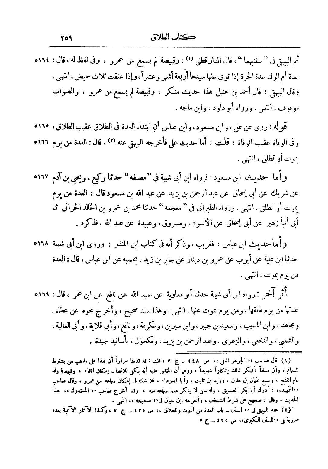 2 عند البيهقي في "السنن - باب العدة من الموت والطلاق" ص 425 - ج 7، وكذا الآثار الآتية بعده مروية في "السنن الكبرى" ص 425 - ج 7.