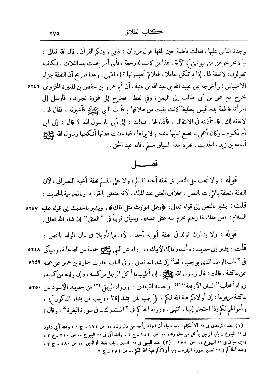 وَجَدْنَا النَّاسَ عَلَيْهَا، فَقَالَتْ فَاطِمَةُ حِينَ بَلَغَهَا قَوْلُ مَرْوَانَ: فَبَيْنِي وَبَيْنَكُمْ الْقُرْآنُ، قَالَ اللَّهُ تَعَالَى: {لَا تُخْرِجُوهُنَّ مِنْ بُيُوتِهِنَّ} الْآيَةَ، هَذَا لِمَنْ كَانَتْ لَهُ رَجْعَةٌ، فَأَيُّ أَمْرٍ يَحْدُثُ بَعْدَ الثَّلَاثِ، فَكَيْفَ تَقُولُونَ: لَا نَفَقَةَ لَهَا، إذَا لَمْ تَكُنْ حَامِلًا، فَعَلَامَ تَحْبِسُونَهَا؟!، انْتَهَى. وَهَذَا صَرِيحٌ أَنَّ النَّفَقَةَ جَزَاءُ الِاحْتِبَاسِ، وَأَخْرَجَهُ عَنْ عُبَيْدِ اللَّهِ بْنِ عَبْدِ اللَّهِ بْنِ عُتْبَةَ، أَنَّ أَبَا عَمْرِو بْنَ حَفْصِ بْنِ الْمُغِيرَةِ الْمَخْزُومِيَّ خَرَجَ مَعَ عَلِيِّ بْنِ أَبِي طَالِبٍ، وَفِي لَفْظٍ: إلَى الْيَمَنِ، وَفِي لَفْظٍ: فَخَرَجَ إلَى غَزْوَةِ نَجْرَانَ، فَأَرْسَلَ إلَى امْرَأَتِهِ فَاطِمَةَ بِنْتِ قَيْسٍ بِتَطْلِيقَةٍ كَانَتْ بَقِيَتْ مِنْ طَلَاقِهَا، فَأَتَتْ النَّبِيَّ صَلَّى اللَّهُ عَلَيْهِ وَسَلَّمَ فَأَخْبَرَتْهُ، فَقَالَ لَهَا: "لَا نَفَقَةَ لَكِ، فَاسْتَأْذَنَتْهُ فِي الِانْتِقَالِ"، فَأَذِنَ لَهَا، فَقَالَتْ: إلَى أَيْنَ يَا رَسُولَ اللَّهِ؟ قَالَ: "إلَى ابْنِ أُمِّ مَكْتُومٍ" - وَكَانَ أَعْمَى - تضع ثيابها عنده وَلَا يَرَاهَا، فَلَمَّا مَضَتْ عِدَّتُهَا أَنْكَحَهَا رَسُولُ اللَّهِ صَلَّى اللَّهُ عَلَيْهِ وَسَلَّمَ أُسَامَةَ بْنَ زَيْدٍ، الْحَدِيثَ. تَفَرَّدَ بِهَذَا السِّيَاقِ مُسْلِمٌ، قاله عبد الحق.