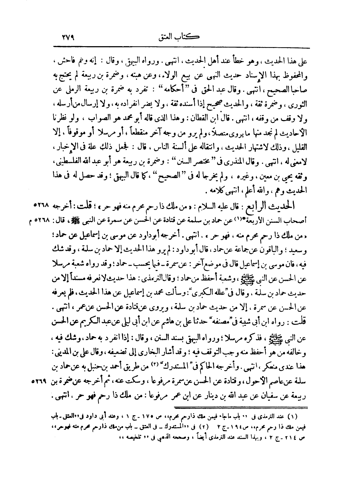 2 في "المستدرك - في العتق - باب من ملك ذا رحم محرم منه فهو حر" ص 214 - ج 2، وبهذا السند عند الترمذي أيضاً، وصححه الذهبي في "تلخيصه".