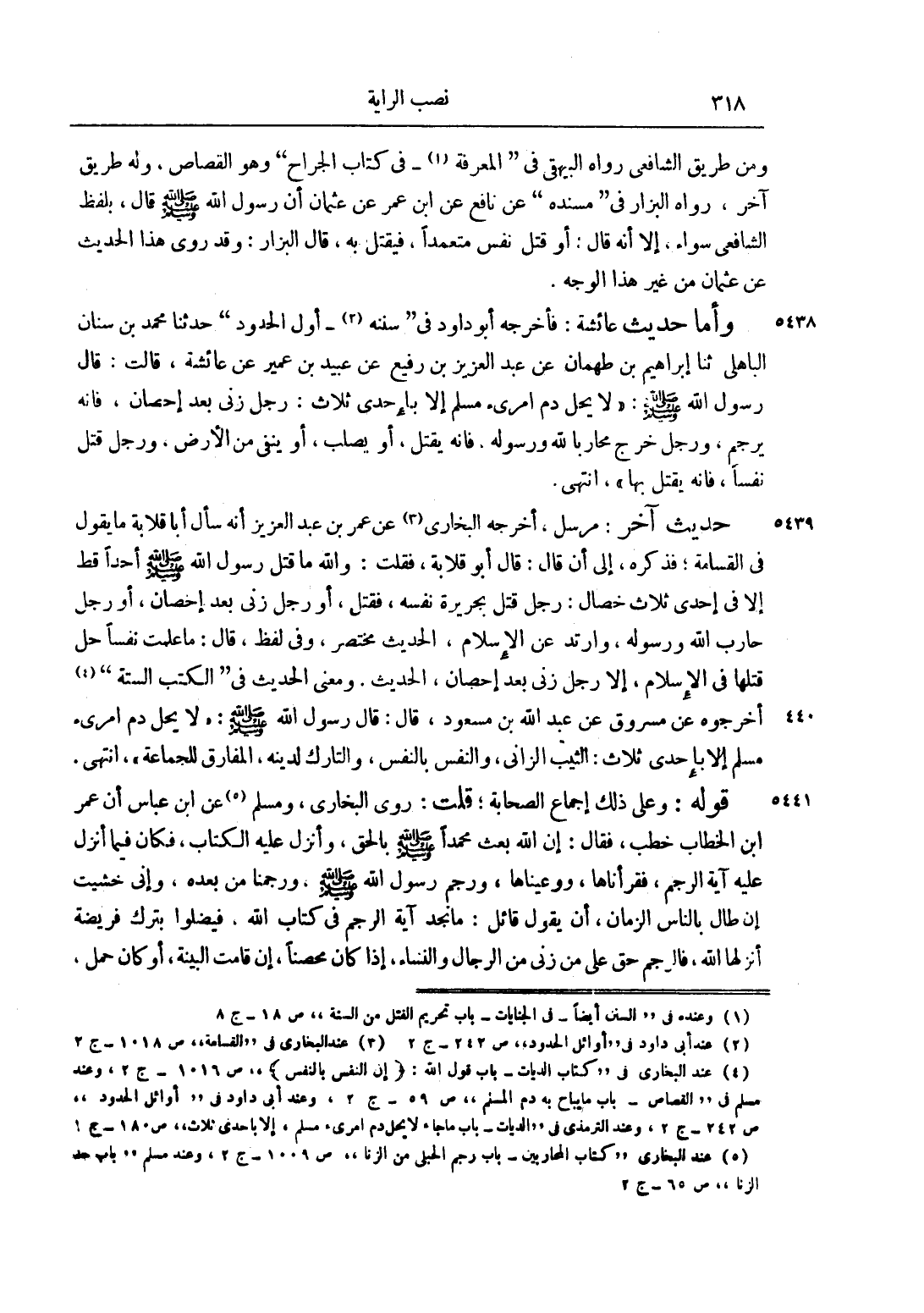 4 عند البخاري في "كتاب الديات - باب قول الله: {أَنَّ النَّفْسَ بِالنَّفْسِ} " ص 1016 - ج 2، وعند مسلم في "القصاص - باب ما يباح به دم المسلم" ص 59 - ج 2، وعند أبي داود في "أوائل الحدود" ص 242 - ج 2، وعند الترمذي في "الديات - باب ما جاء لا يحل دم امرئ مسلم، إلا باحدى ثلاث" ص 180 - ج 1.