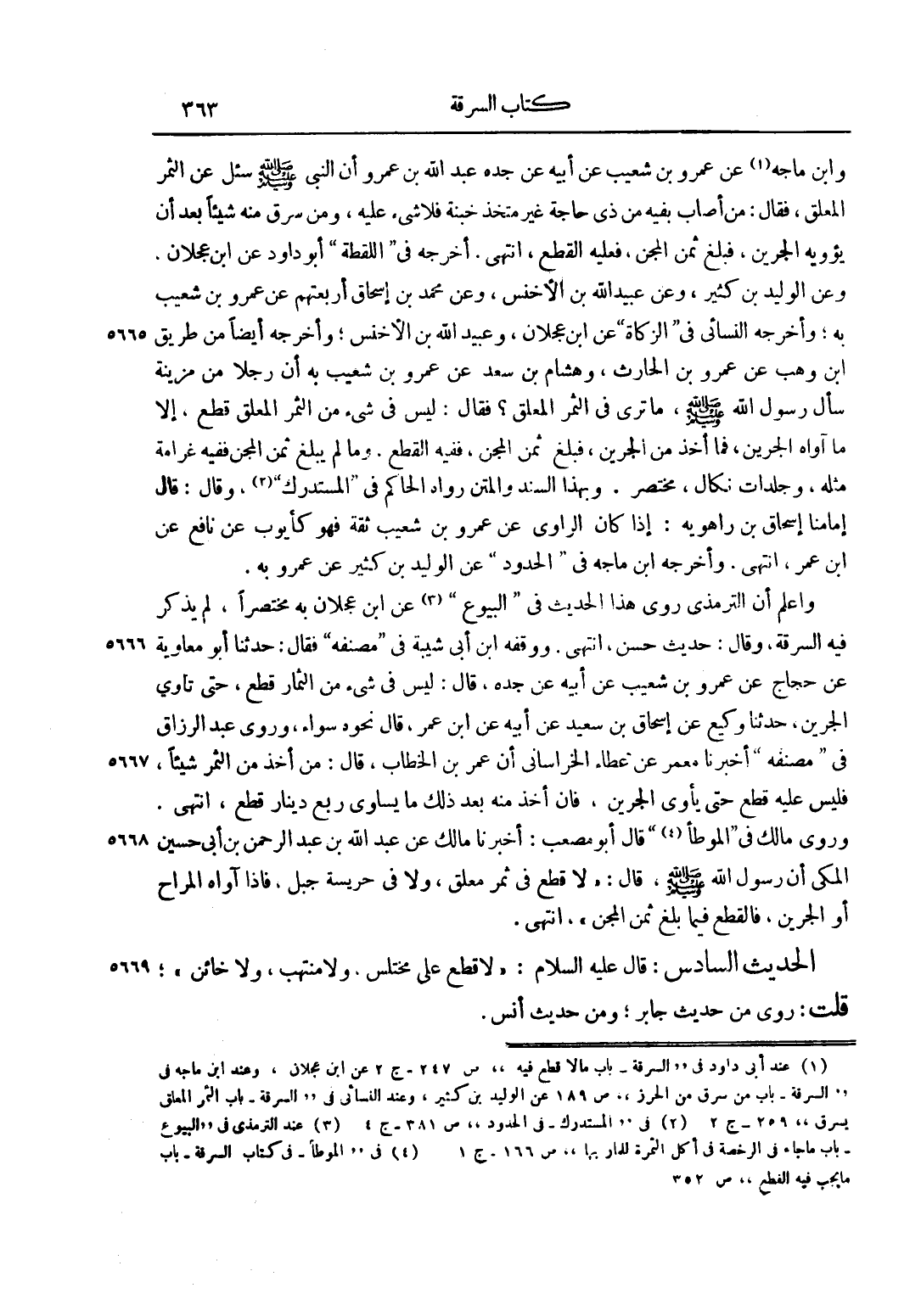 1 عند أبي داود في "السرقة - باب ما لا قطع فيه" ص 247 - ج 2 عن ابن عجلان، وعند ابن ماجه في "السرقة - باب من سرق من الحرز" ص 189 عن الوليد بن كثير، وعند النسائي في "السرقة - باب الثمر المعلق يسرق" 259 - ج 2.