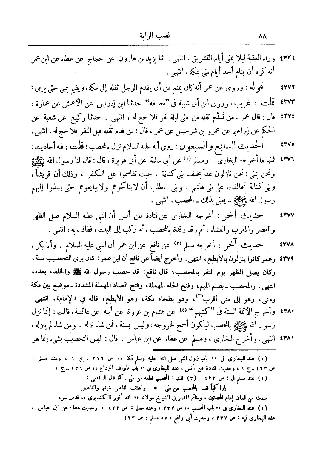 4 عند البخاري في "باب المحصب" ص 237، وعند مسلم: ص 422، وحديث عطاء عن ابن عباس، عند البخاري فيه: ص 237، وحديث أبي رافع، عند مسلم: ص 423.