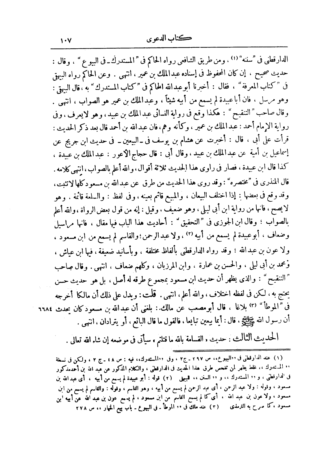 1 عند الدارقطني في البيوع ص 297 ج 2، وفي المستدرك فيه: ص 48 ج 2، ولكن في نسخة المستدرك غلط يظهر لمن تفحص طرق هذا الحديث في الدارقطني، والكلام المذكور عن عبد الله بن أحمد مذكور في الدارقطني، والمستدرك والسنن للبيهقي.