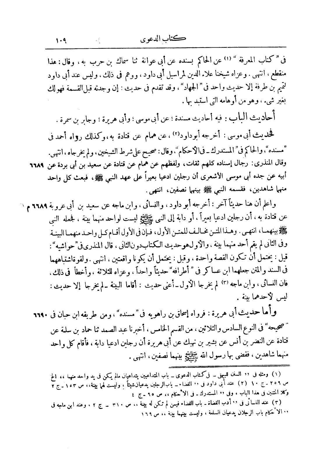 2 عند أبي داود في القضاء باب الرجلين يدعيان شيئاً، وليست لهما بينة ص 153 ج 2 وكلا المتنين في هذا الباب، وفي المستدرك في الأحكام ص 95 ج 4.