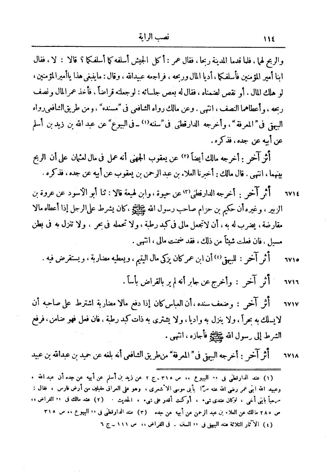 1 عند الدارقطني في البيوع ص 315 ج 2 عن زيد بن أسلم عن أبيه عن جده أن عبد الله، وعبيد الله ابني عمر رضي الله عنه مرّا بأبي موسى الأشعري، وهو على العراق مقبلين من أرض فارس، فقال: مرحباً بابني أخي، لو كان عندي شيء، أو كنت أقدر على شيء، الحديث.