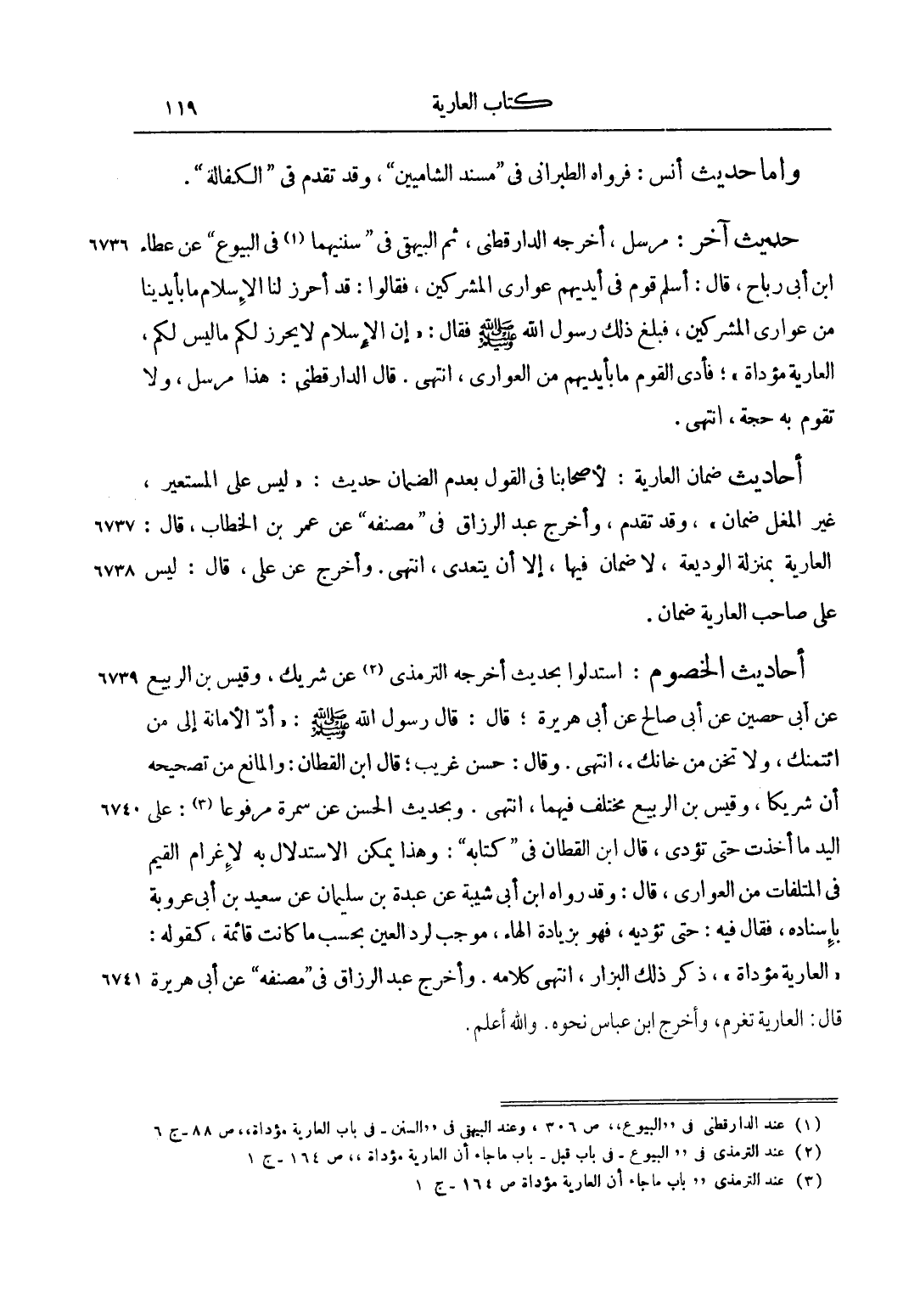 1 عند الدارقطني في البيوع ص 306، وعند البيهقي في السنن في باب العارية مؤداة ص 88 ج 6.