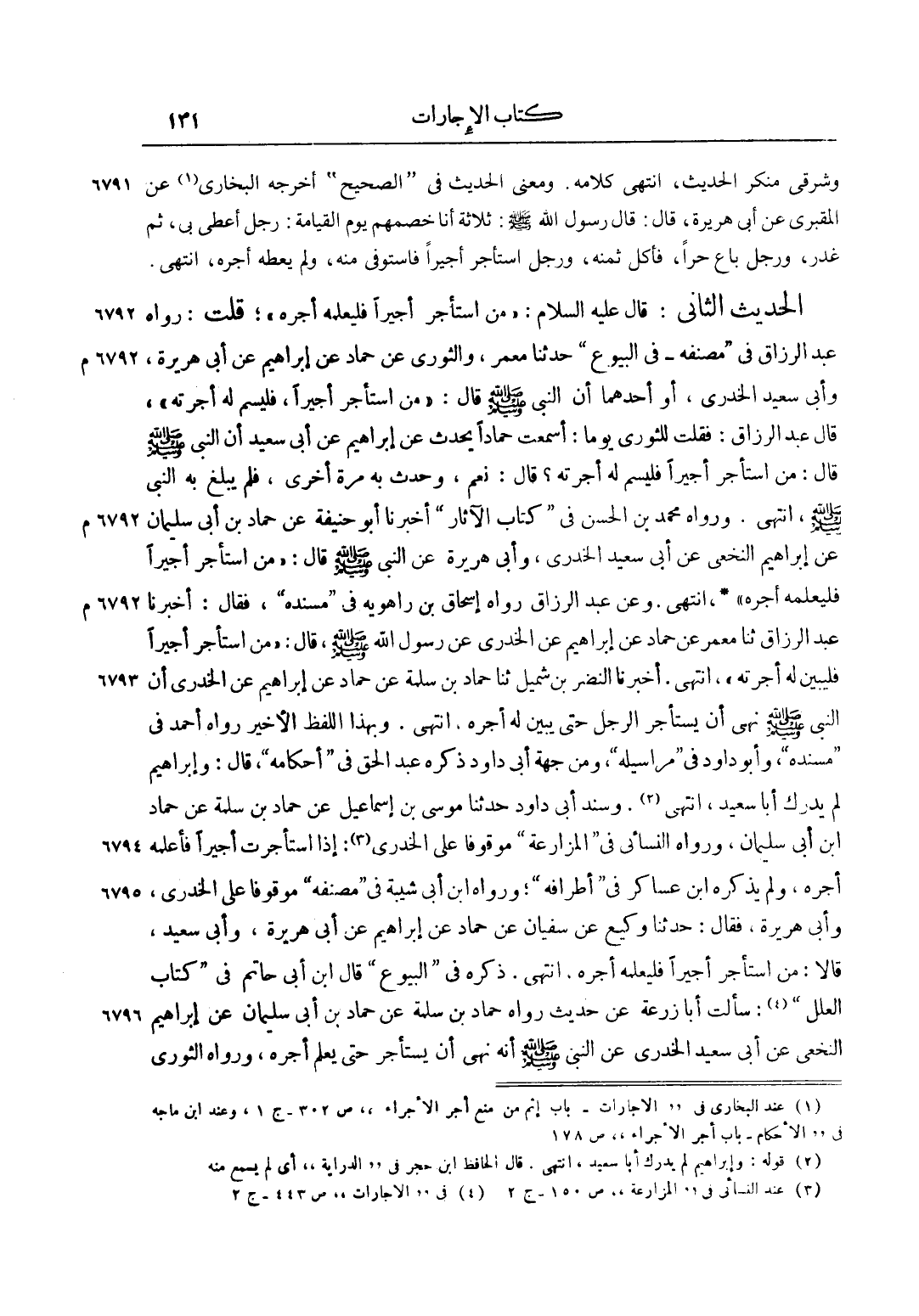 1 عند البخاري في الإجارات باب إثم من منع أجر الأجراء ص 302 ج 1، وعند ابن ماجه في الأحكام باب أجر الأجراء ص 178.