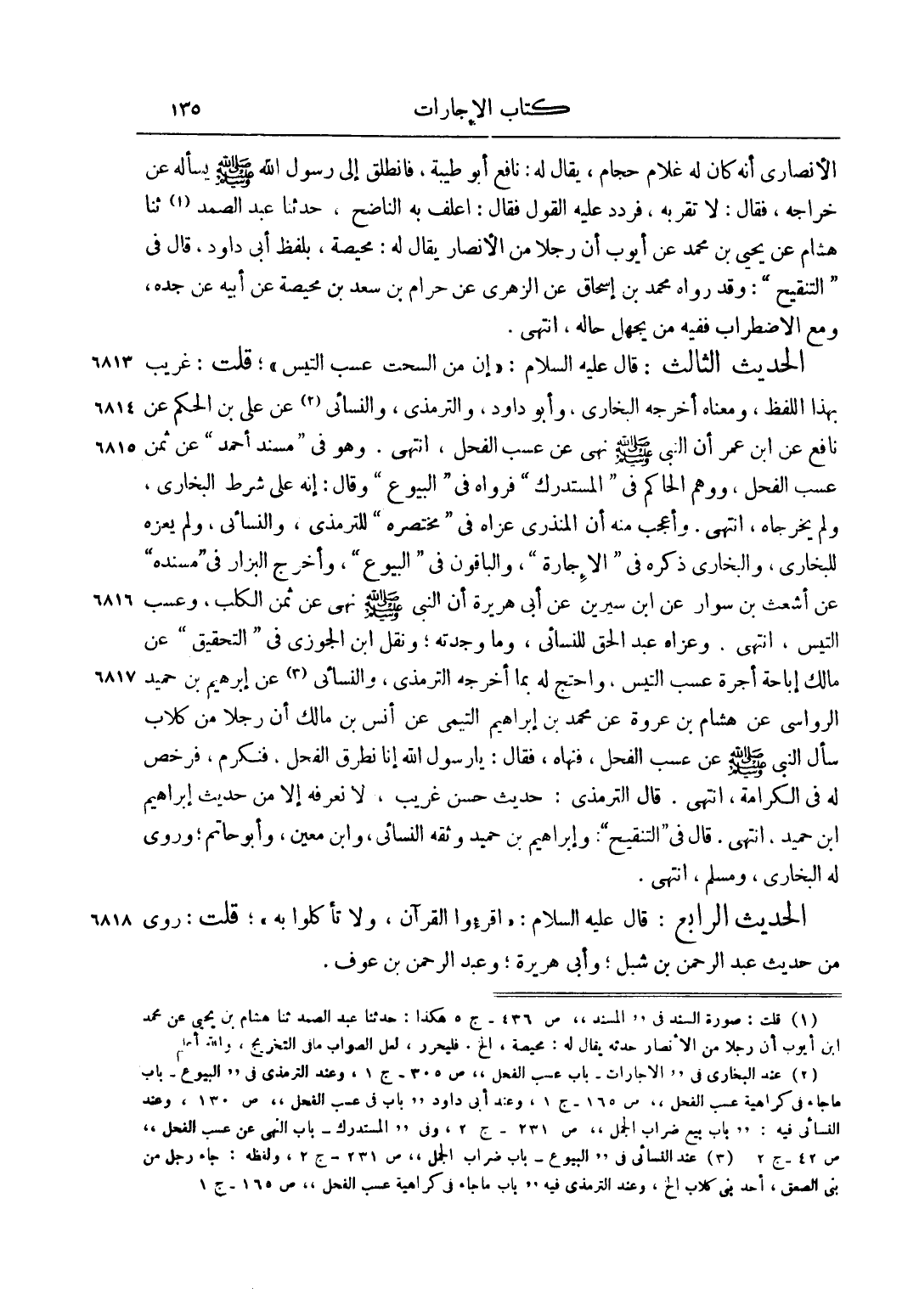2 عند البخاري في الإجارات باب عسب الفحل ص 305 ج 1، وعند الترمذي في البيوع باب ما جاء في كراهية عسب الفحل ص 165 ج 1، وعند أبي داود باب في عسب الفحل ص 130، وعند النسائي فيه: باب بيع ضراب الجمل ص 231 ج 2، وفي المستدرك باب النهي عن عسب الفحل ص 42 ج 2.