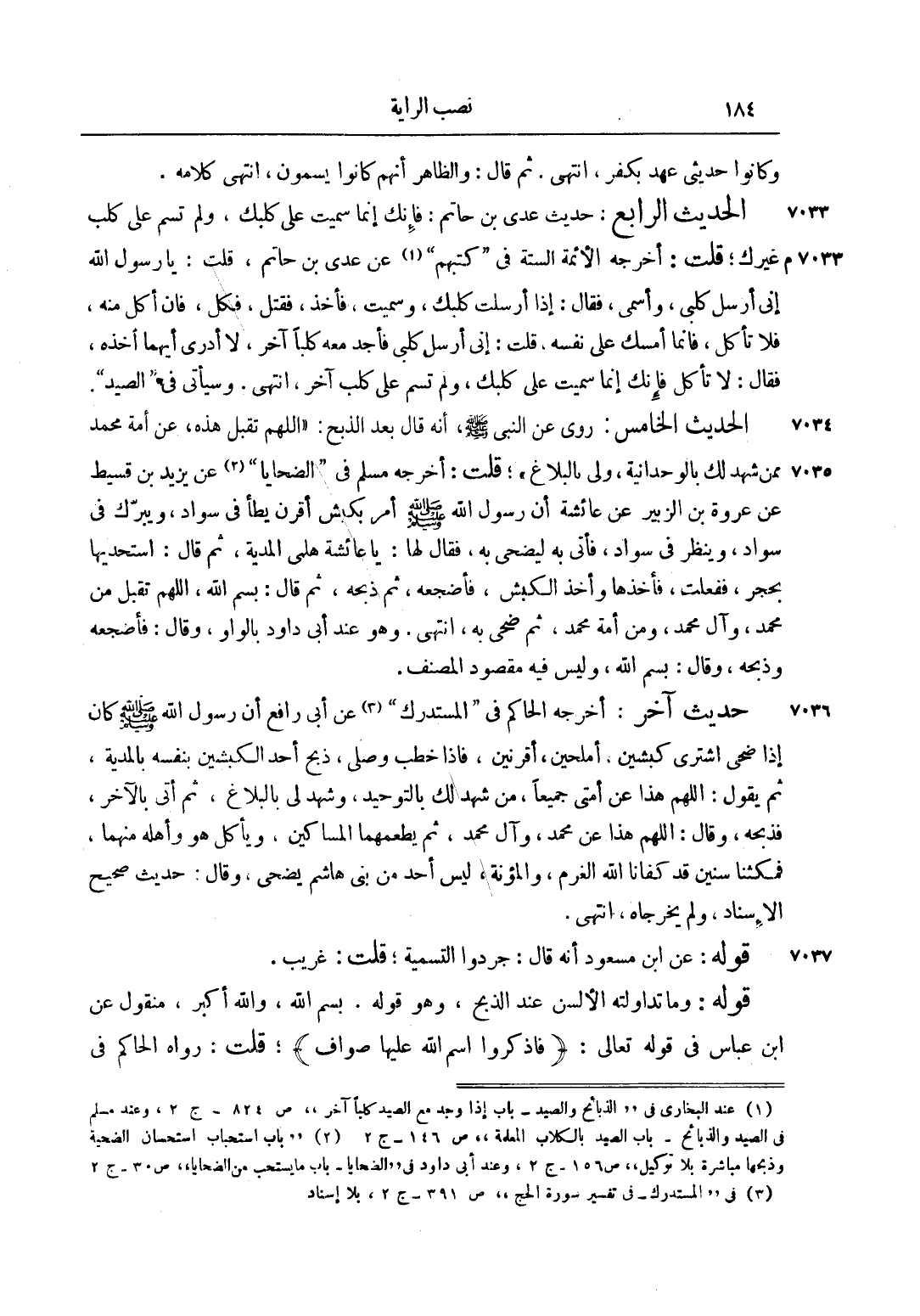 1 عند البخاري في الذبائح والصيد باب إذا وجد مع الصيد كلباً آخر ص 824 ج 2، وعند مسلم في الصيد والذبائح باب الصيد بالكلاب المعلمة ص 146 ج 2.