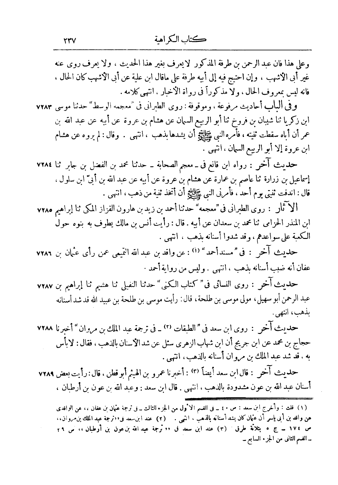1 قلت: وأخرج ابن سعد: ص 40 في القسم الأول من الجزء الثالث في ترجمة عثمان بن عفان عن الواقدي عن واقد بن أبي ياسر أن عثمان كان يشد أسنانه بالذهب، انتهى.