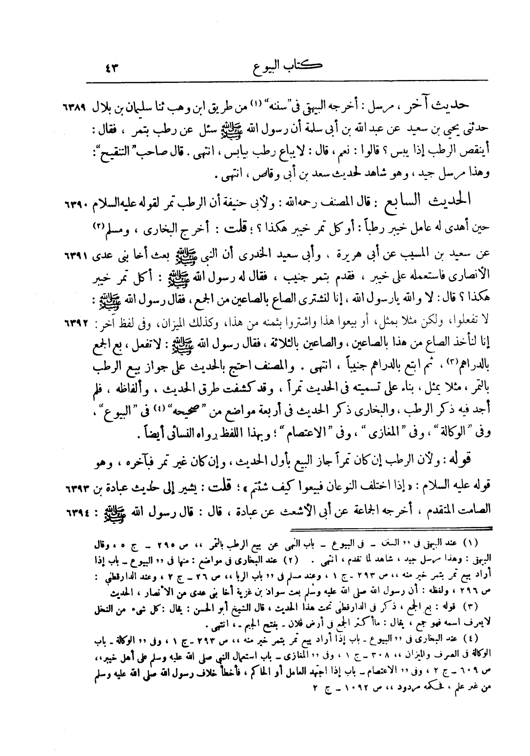 4 عند البخاري في البيوع باب إذا أراد بيع تمر بتمر خير منه ص 293 ج 1، وفي الوكالة باب الوكالة في الصرف والميزان 308 ج 1، وفي المغازي باب استعمال النبي صَلَّى اللَّهُ عَلَيْهِ وَسَلَّمَ على أهل خيبر ص 609 ج 2، وفي الاعتصام باب إذا اجتهد العامل أو الحاكم، فأخطأ خلاف رسول الله صَلَّى اللَّهُ عَلَيْهِ وَسَلَّمَ من غير علم، فحكمه مردود ص 1092 ج 2.