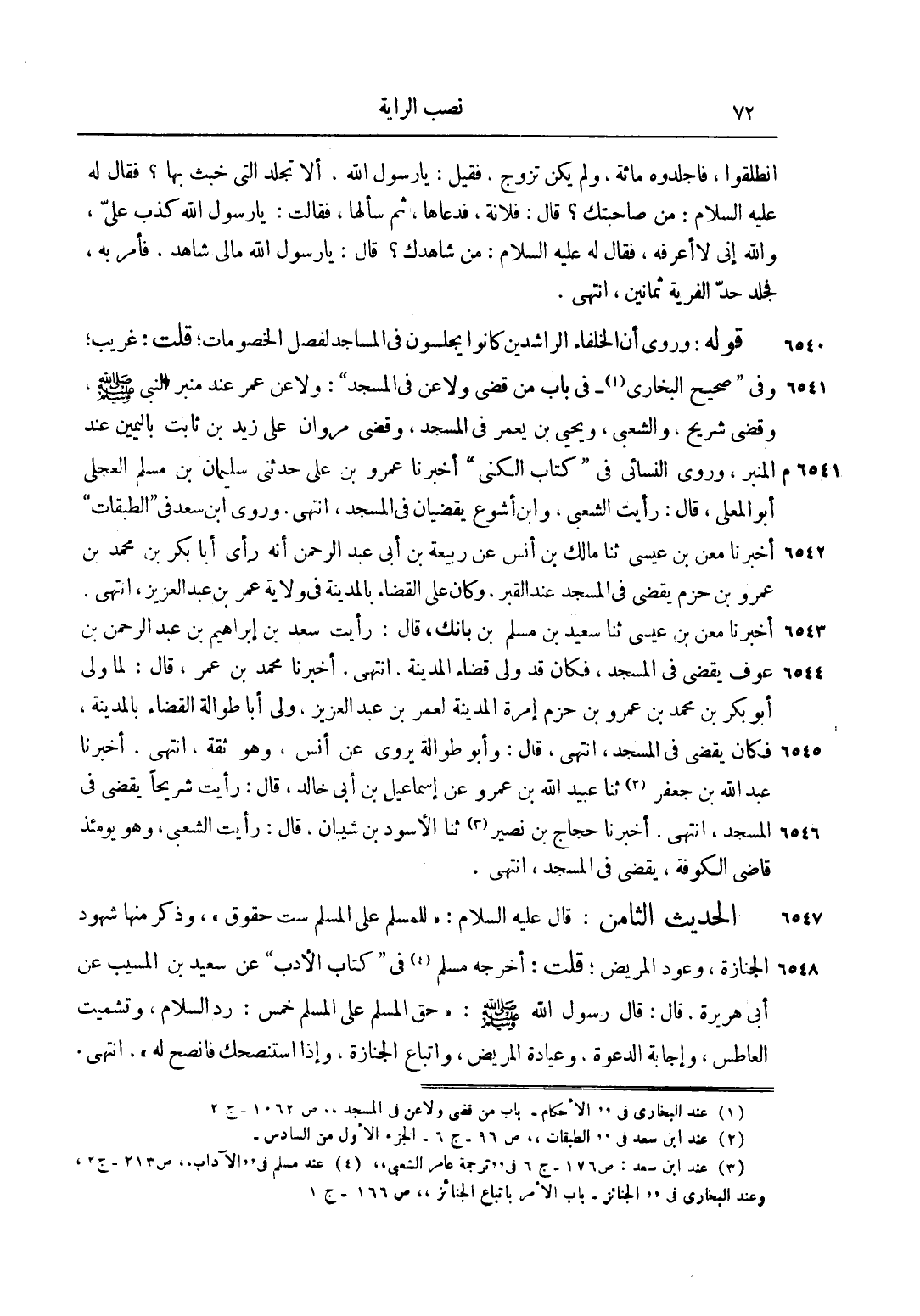 قَوْلُهُ: وَرُوِيَ أَنَّ الْخُلَفَاءَ الرَّاشِدِينَ كَانُوا يَجْلِسُونَ فِي الْمَسَاجِدِ لِفَصْلِ الْخُصُومَاتِ، قُلْت: غَرِيبٌ، وَفِي صَحِيحِ الْبُخَارِيِّ1 فِي بَابِ مَنْ قَضَى وَلَاعَنَ فِي الْمَسْجِدِ: وَلَاعَنَ عُمَرُ عِنْدَ مِنْبَرِ النَّبِيِّ صَلَّى اللَّهُ عَلَيْهِ وَسَلَّمَ، وَقَضَى شُرَيْحٌ، وَالشَّعْبِيُّ، وَيَحْيَى بْنُ يَعْمُرَ فِي الْمَسْجِدِ، وَقَضَى مَرْوَانُ عَلَى زَيْدِ بْنِ ثَابِتٍ بِالْيَمِينِ عِنْدَ الْمِنْبَرِ، وَرَوَى النَّسَائِيّ فِي كِتَابِ الْكُنَى أَخْبَرَنَا عَمْرُو بْنُ عَلِيٍّ حَدَّثَنِي سُلَيْمَانُ بْنُ مُسْلِمٍ الْعِجْلِيّ أَبُو الْمُعَلَّى، قَالَ: أرأيت الشَّعْبِيَّ، وَابْنَ أَشْوَعَ يَقْضِيَانِ فِي الْمَسْجِدِ، انْتَهَى. وَرَوَى ابْنُ سَعْدٍ فِي الطَّبَقَاتِ أَخْبَرَنَا مَعْنُ بْنُ عِيسَى ثَنَا مَالِكُ بْنُ أَنَسٍ عَنْ رَبِيعَةَ بْنِ أَبِي عَبْدِ الرَّحْمَنِ أَنَّهُ رَأَى أَبَا بَكْرِ بْنَ مُحَمَّدِ بْنِ عَمْرِو بْنِ حَزْمٍ يقضي في السمجد عِنْدَ الْقَبْرِ، وَكَانَ عَلَى الْقَضَاءِ بِالْمَدِينَةِ فِي وِلَايَةِ عُمَرَ بْنِ عَبْدِ الْعَزِيزِ، انْتَهَى. أَخْبَرَنَا مَعْنُ بْنُ عِيسَى ثَنَا سَعِيدُ بْنُ مسلم بن بابك، قَالَ: رَأَيْت سَعْدَ بْنَ إبْرَاهِيمَ بْنِ عَبْدِ الرَّحْمَنِ بْنِ عَوْفٍ يَقْضِي فِي الْمَسْجِدِ، فَكَانَ قَدْ وَلِيَ قَضَاءَ الْمَدِينَةِ، انْتَهَى. أَخْبَرَنَا مُحَمَّدُ بْنُ عُمَرَ، قَالَ: لَمَّا وَلِيَ أَبُو بَكْرِ بْنُ مُحَمَّدِ بْنِ عَمْرِو بْنِ حَزْمٍ إمْرَةَ الْمَدِينَةِ لِعُمَرَ بْنِ عَبْدِ الْعَزِيزِ، وَلَّى أَبَا طُوَالَةَ الْقَضَاءَ بِالْمَدِينَةِ، فَكَانَ يَقْضِي فِي الْمَسْجِدِ، انْتَهَى. قَالَ: وَأَبُو طُوَالَةَ يَرْوِي عَنْ أَنَسٍ، وَهُوَ ثِقَةٌ، انْتَهَى. أَخْبَرَنَا عَبْدُ اللَّهِ بْنُ جَعْفَرٍ2 ثَنَا عُبَيْدُ اللَّهِ بْنُ عَمْرٍو عَنْ إسْمَاعِيلَ بْنِ أَبِي خَالِدٍ، قَالَ: رَأَيْت شريحاً يقضي في السجد، انْتَهَى. أَخْبَرَنَا حَجَّاجُ بْنُ نُصَيْرٍ3 ثَنَا الْأَسْوَدُ بْنُ شَيْبَانُ، قَالَ: رَأَيْت الشَّعْبِيَّ، وَهُوَ يَوْمَئِذٍ قَاضِي الْكُوفَةِ، يَقْضِي فِي الْمَسْجِدِ، انْتَهَى.