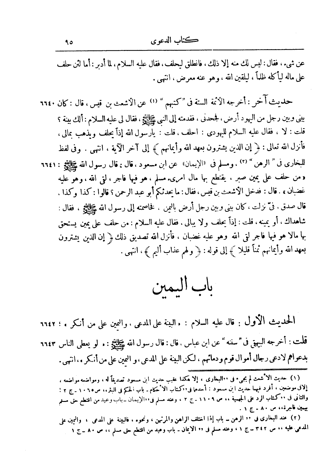 1 حديث الأشعث لم يجيء في البخاري، إلا هكذا عقيب حديث ابن مسعود تصديقاً له، ومواضعه مواضعه، إلا في موضعين، أفرد فيهما حديث ابن مسعود: أحدهما في كتاب الأحكام باب الحكم في البئر، ص 1065 ج 2، والثاني في كتاب الرد على الجهمية ص 1109 ج 2، وعند مسلم في الأيمان باب وعيد من اقتطع حق مسلم بيمين فاجرة ص 80 ج 1.