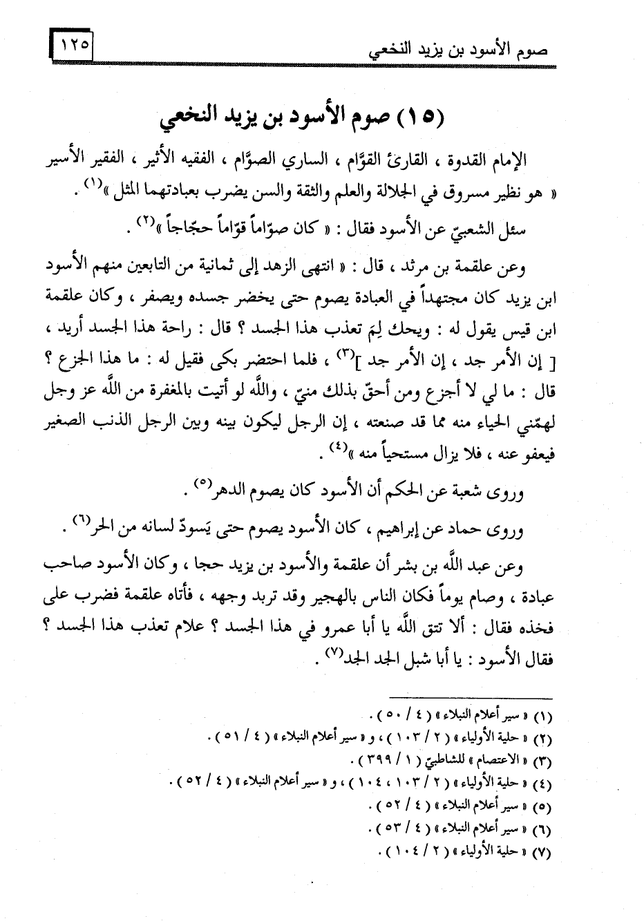 وروى حماد عن إبراهيم، كان الأسود يصوم حتى يَسود لسانه من الحر (6) .