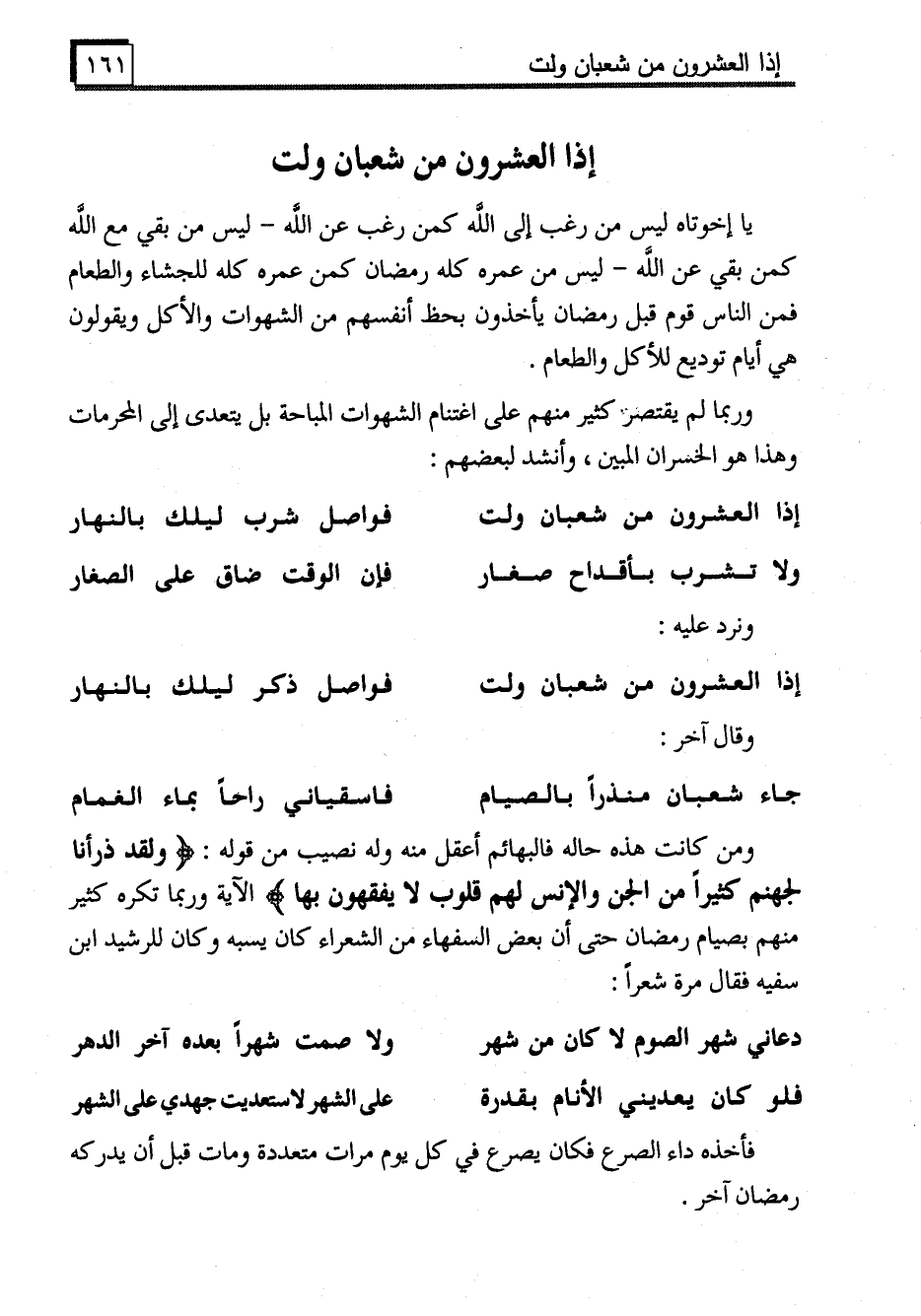 إذا العشرون من شعبان ولت ... فواصل ذكر ليلك بالنهار