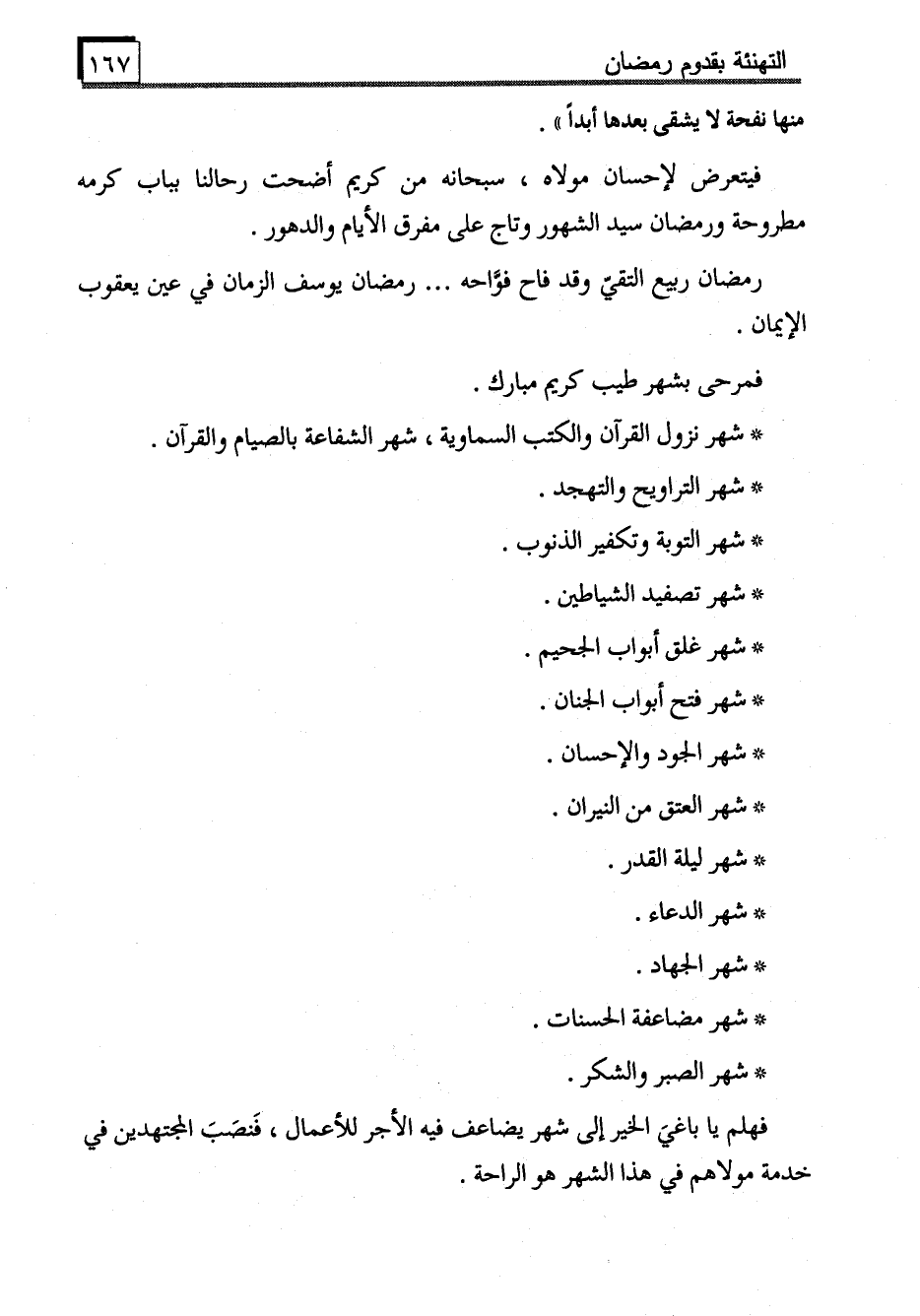 فيتعرض لإحسان مولاه، سبحانه من كريم أضحت رحالنا بباب كرمه مطروحة ورمضان سيد الشهور وتاج على مفرق الأيام والدهور.