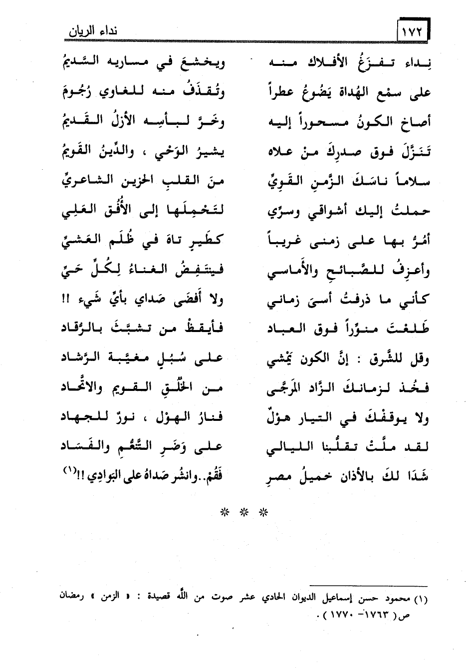 شَدَا لكَ بالأذان خميلُ مصرِ ... فَقُمْ.. وانشُر صَداهُ على البَوادِي!! (1)