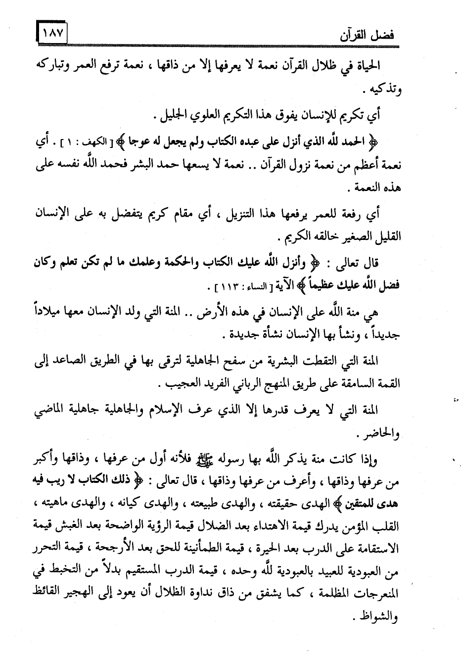 (الحمد لله الذي أنزل على عبده الكتاب ولم يجعل له عوجا) [الكهف:1] . أي نعمة أعظم من نعمة نزول القرآن.. نعمة لا يسعها حمد البشر فحمد الله نفسه على هذه النعمة.