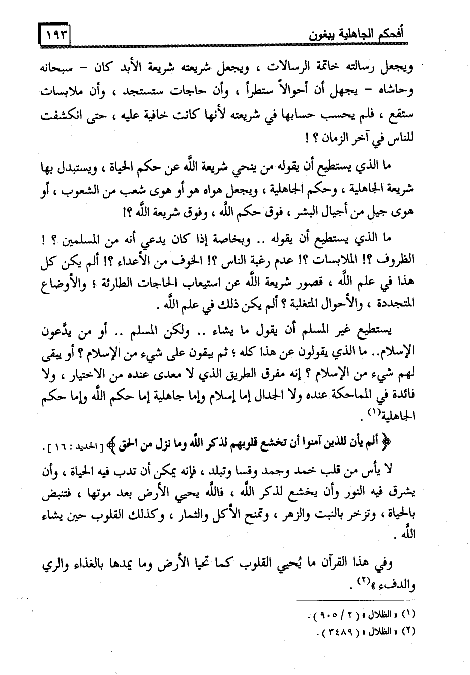 ما الذي يستطيع أن يقوله من ينحي شريعة الله عن حكم الحياة، ويستبدل بها شريعة الجاهلية، وحكم الجاهلية، ويجعل هواه هو أو هوى شعب من الشعوب، أو هوى جيل من أجيال البشر، فوق حكم الله، وفوق شريعة الله؟!