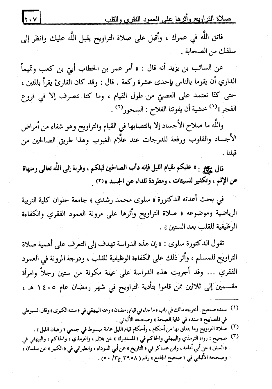 في بحث أعدته الدكتورة "سلوى محمد رشدي" جامعة حلوان كلية التربية الرياضية وموضوعه "صلاة التراويح وأثرها على مرونة العمود الفقري والكفاءة الوظيفية للقلب بعد الستين".