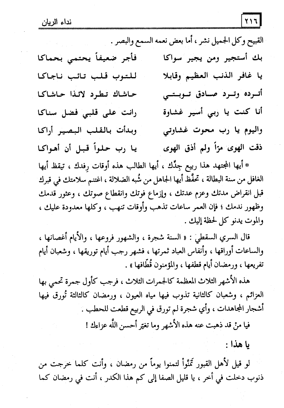 لو قيل لأهل القبور تَمنَّواْ لتمنوا يوماً من رمضان، وأنت كلما خرجت من ذنوب دخلت في أخر، يا قليل الصفا إلى كم هذا الكدر، أنت في رمضان كما