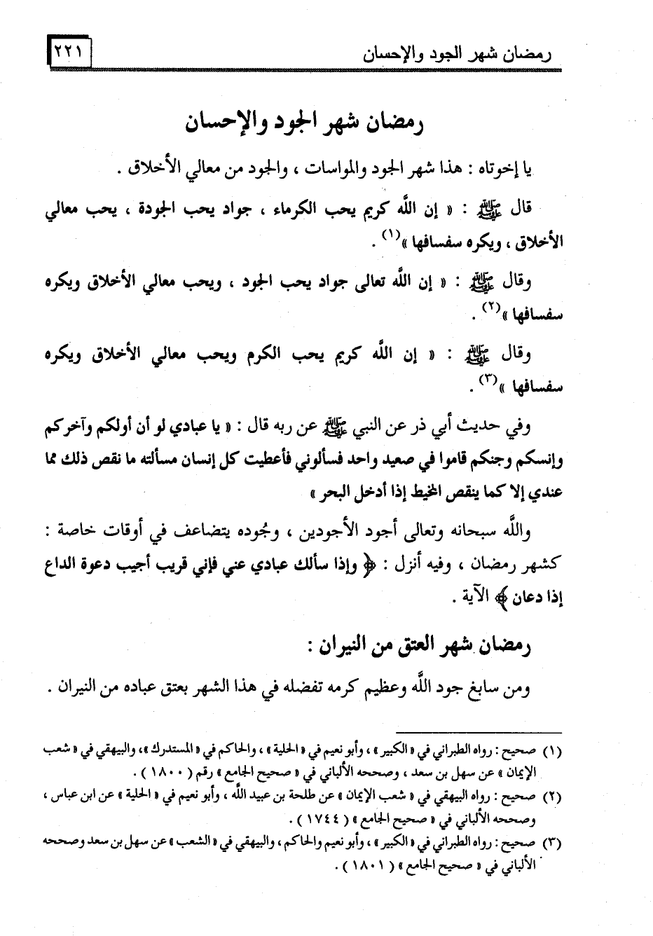 يا إخوتاه: هذا شهر الجود والمواسات، والجود من معالي الأخلاق.