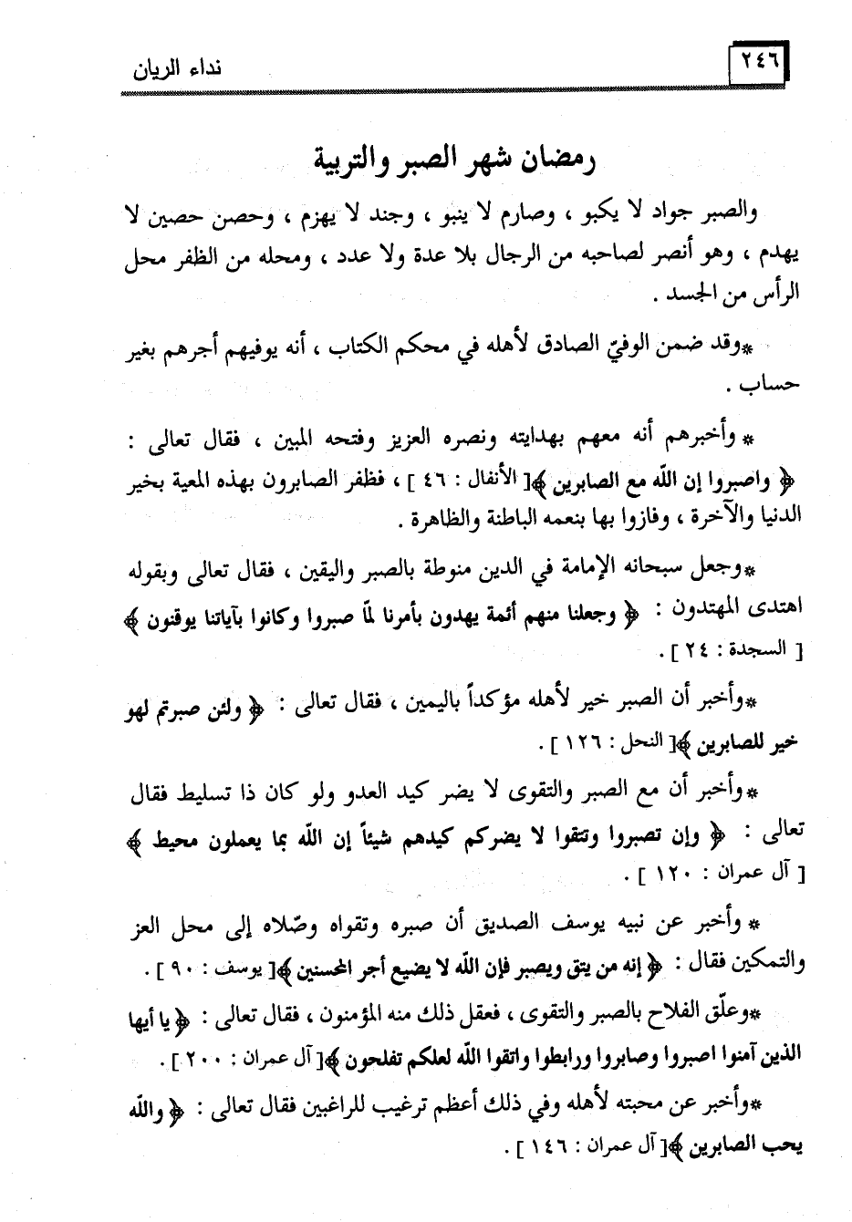 * وجعل سبحانه الإمامة في الدين منوطة بالصبر واليقين، فقال تعالى وبقوله اهتدى المهتدون: (وجعلنا منهم أئمة يهدون بأمرنا لما صبروا وكانوا بآياتنا يوقنون) [السجدة: 24] .