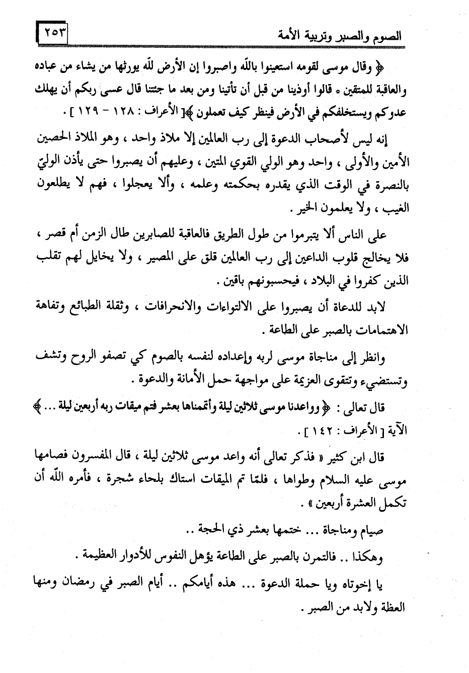 وانظر إلى مناجاة موسى لربه وإعداده لنفسه بالصوم كي تصفو الروح وتشف وتستضيء وتتقوى العزيمة على مواجهة حمل الأمانة والدعوة.
