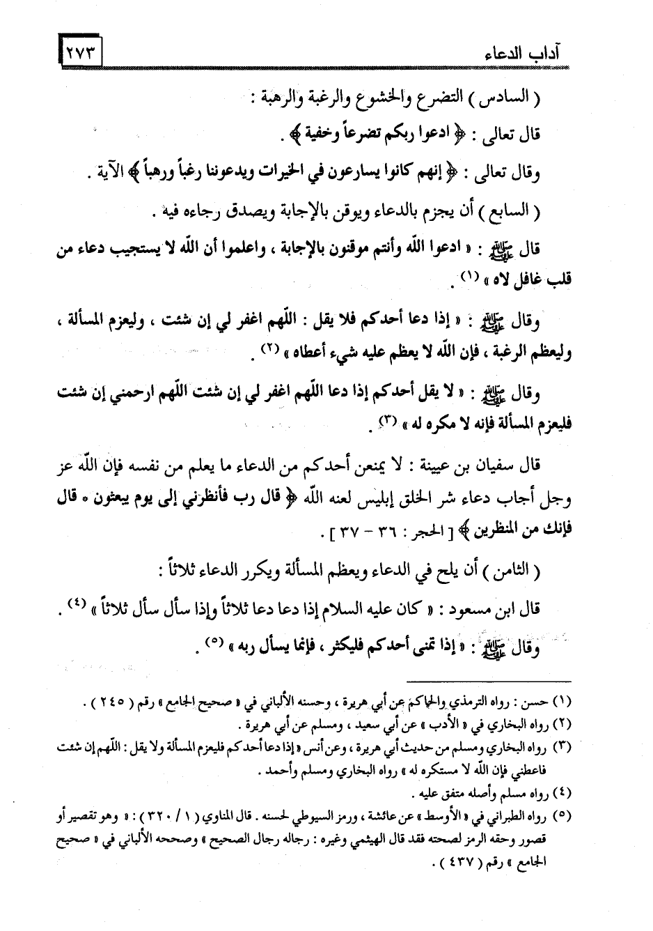 (3) رواه البخاري ومسلم من حديث أبي هريرة، وعن أنس"إذا دعا أحدكم فليعزم المسألة ولا يقل: اللهم إن شئت فاعطني فإن الله لا مستكره له" رواه البخاري ومسلم وأحمد.
