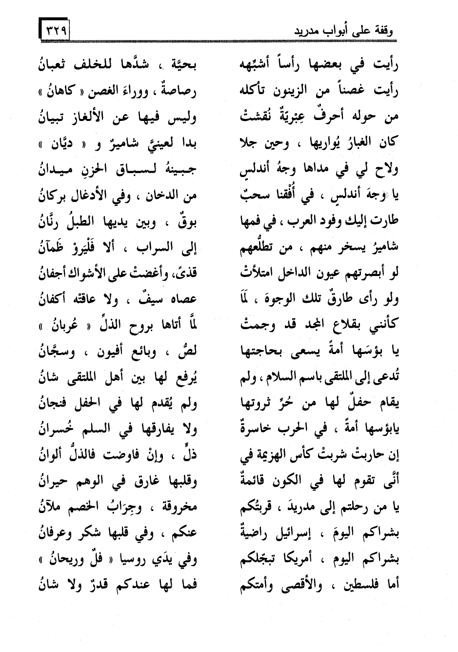 يا وجهَ أندلسٍ، في أُفْقنا سحبٌ ... من الدخان، وفي الأدغال بركانُ