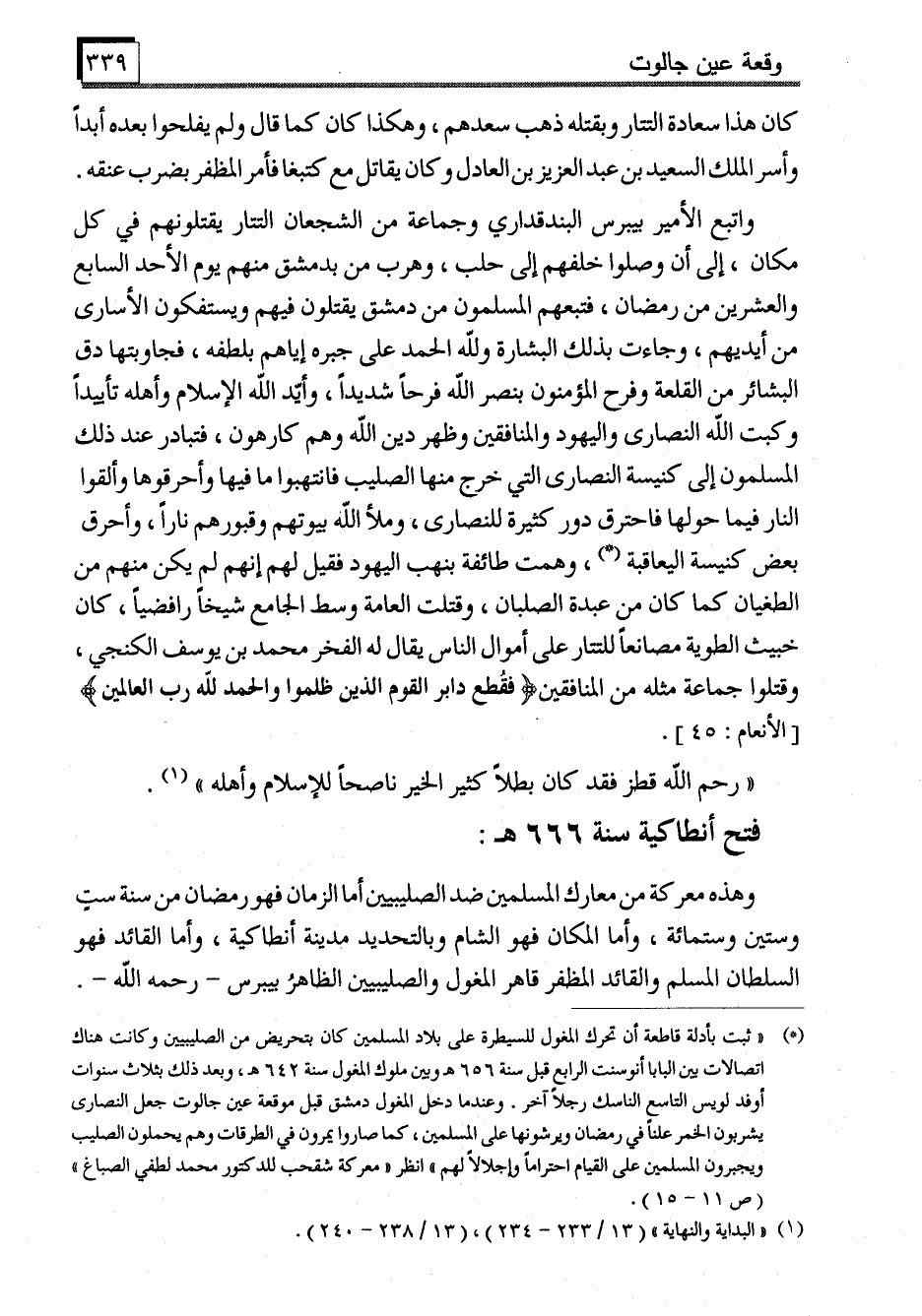 كان هذا سعادة التتار وبقتله ذهب سعدهم، وهكذا كان كما قال ولم يفلحوا بعده أبداً وأسر الملك السعيد بن عبد العزيز بن العادل وكان يقاتل مع كتبغا فأمر المظفر بضرب عنقه.