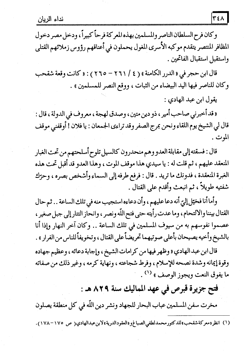 (1) انظر "معركة شقحب" للدكتور محمد لطفي الصباغ و"العقود الدرية" لابن عبد الهادي (ص 175-178) .