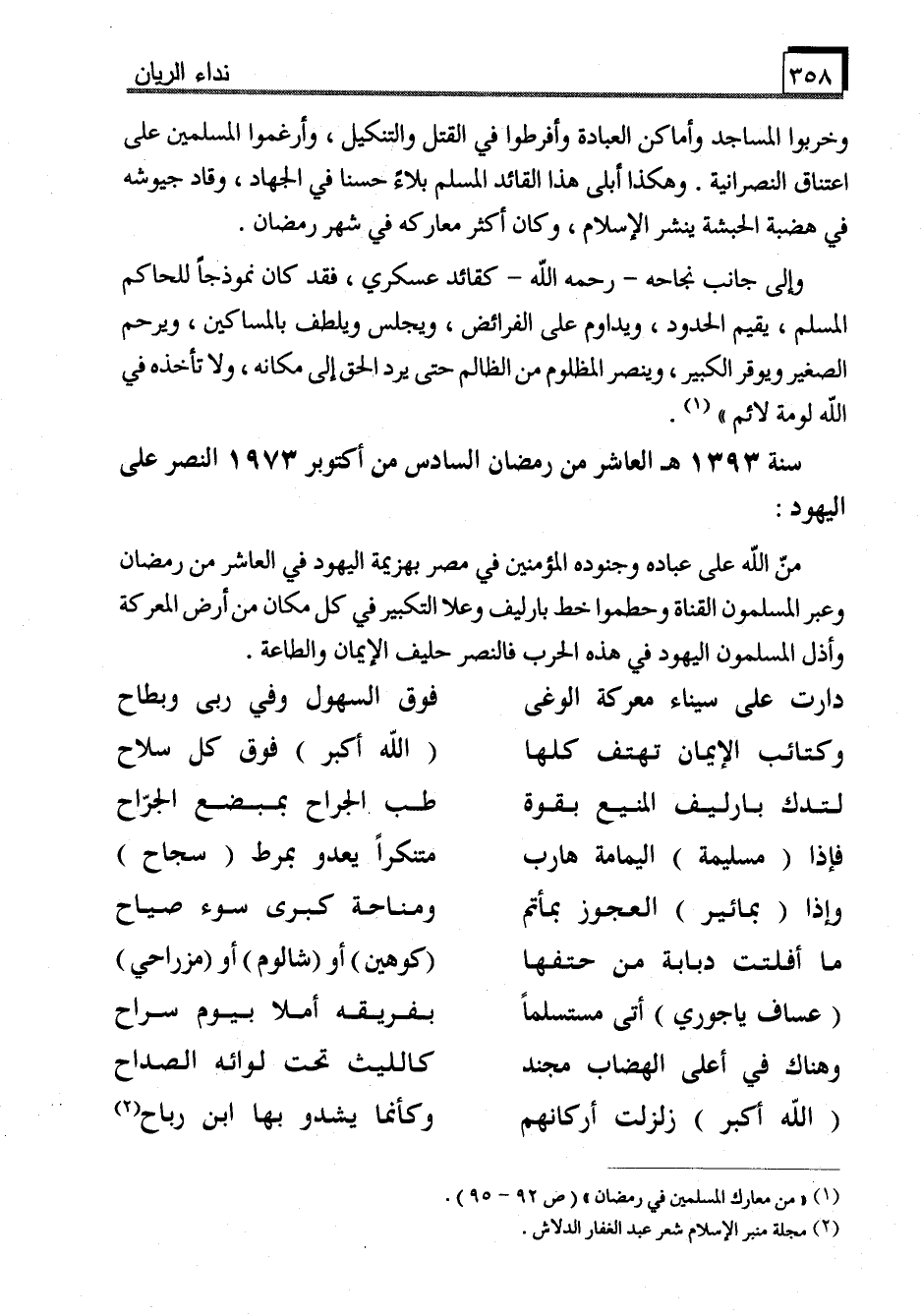 سنة 1393 هـ العاشر من رمضان السادس من أكتوبر 1973 النصر على اليهود: