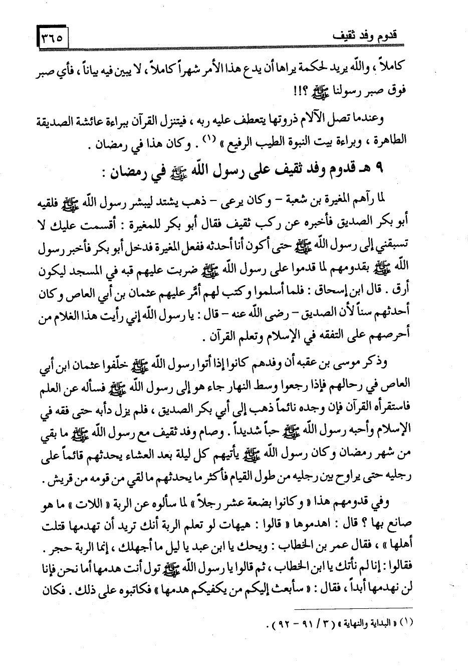 9 هـ قدوم وفد ثقيف على رسول الله - صَلَّى اللَّهُ عَلَيْهِ وَسَلَّمَ - في رمضان: