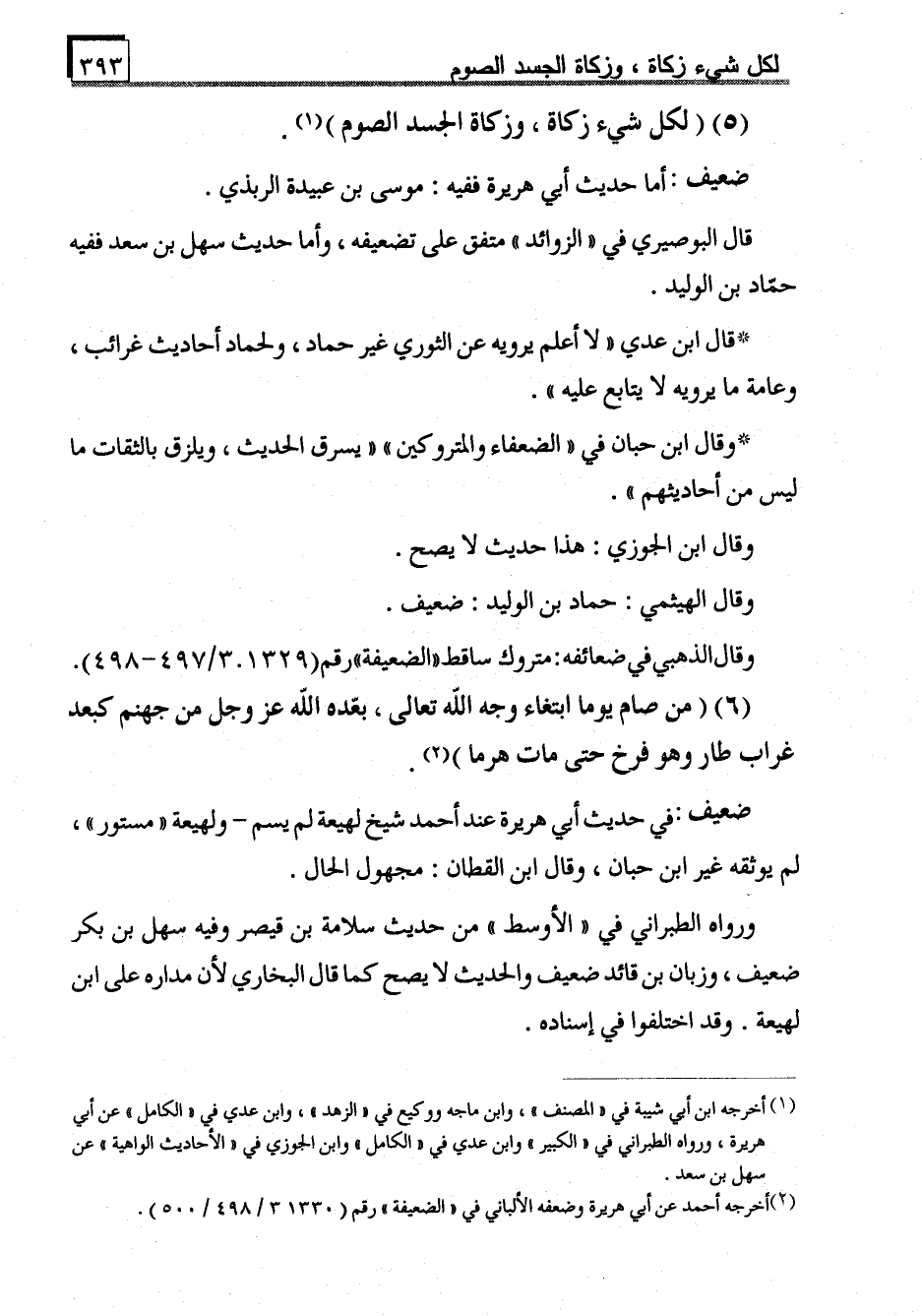 (5) (لكل شيء زكاة، وزكاة الجسد الصوم) (1) .