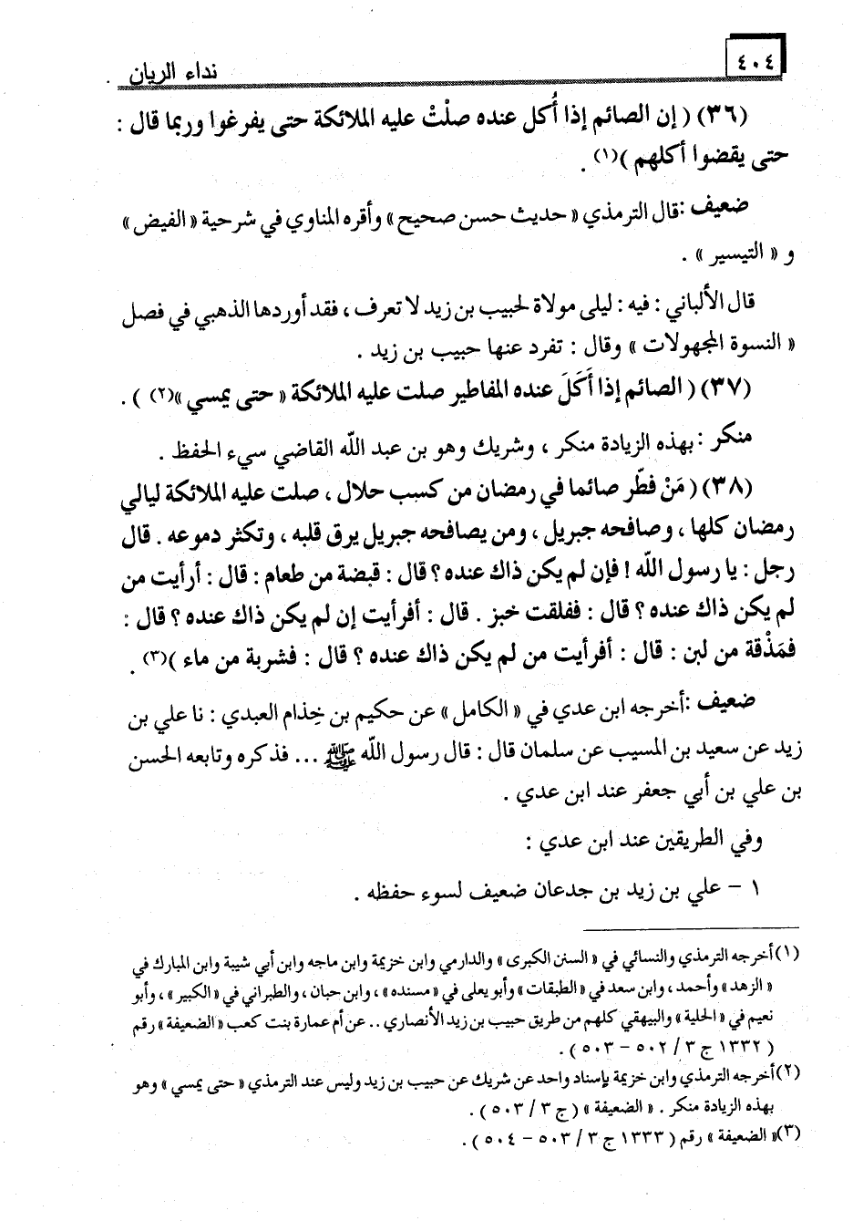 (37) (الصائم إذا أَكَلَ عنده المفاطير صلت عليه الملائكة "حتى يمسي" (2)) .