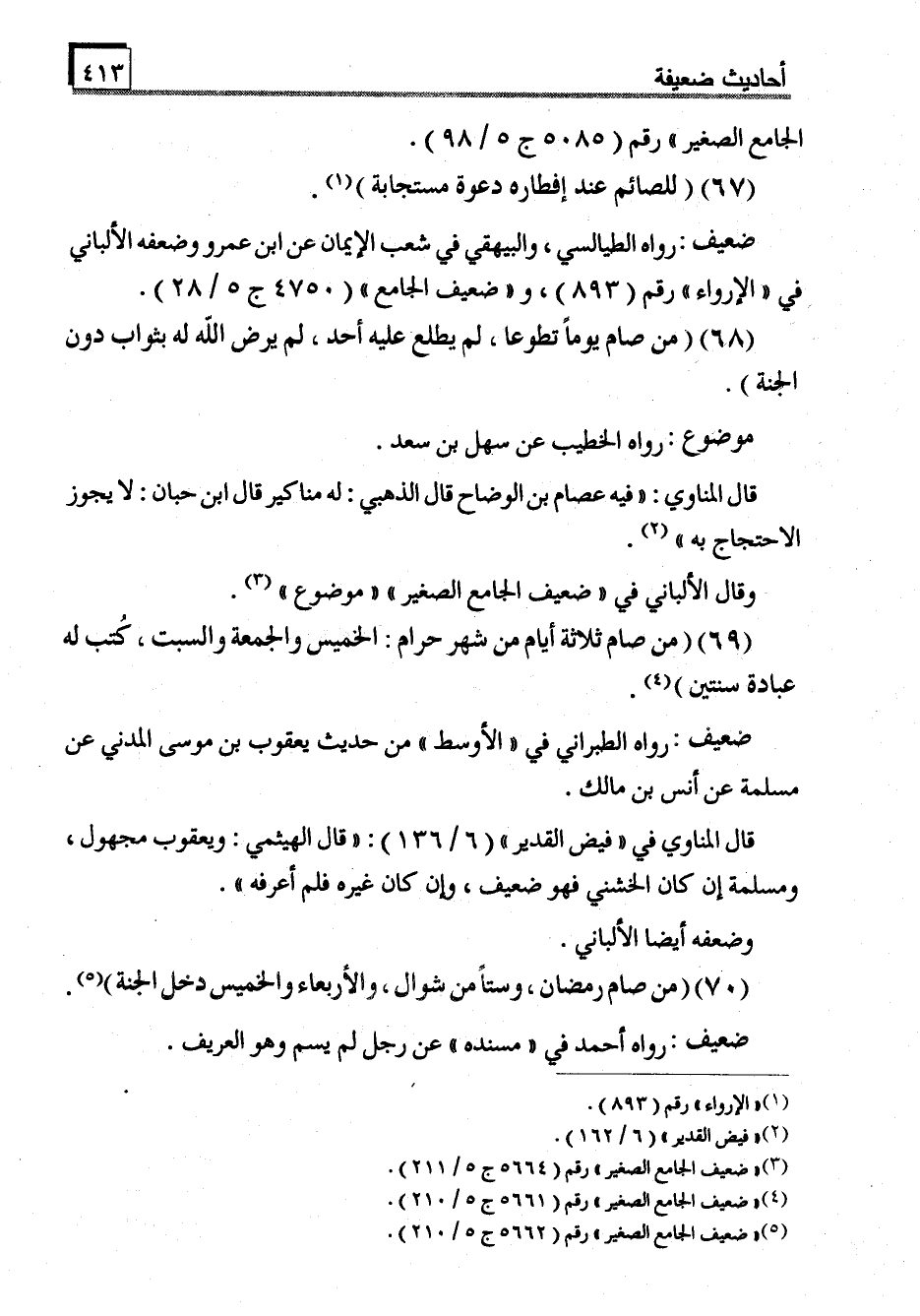 (5) "ضعيف الجامع الصغير" رقم (5662 ج 5/210) .