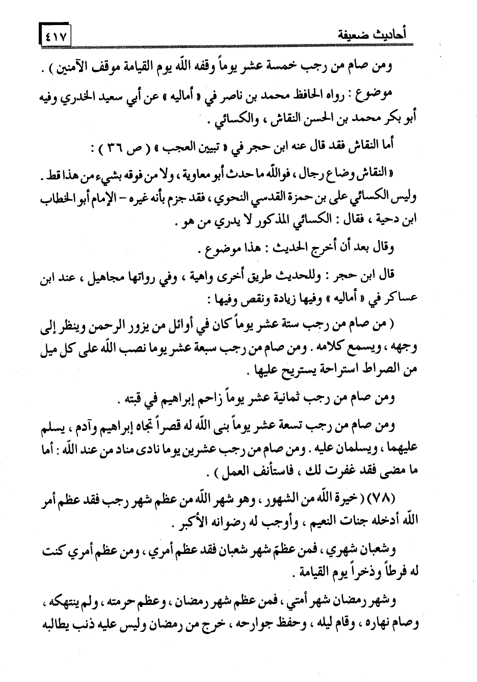 (78) (خيرة الله من الشهور، وهو شهر الله من عظم شهر رجب فقد عظم أمر الله أدخله جنات النعيم، وأوجب له رضوانه الأكبر.