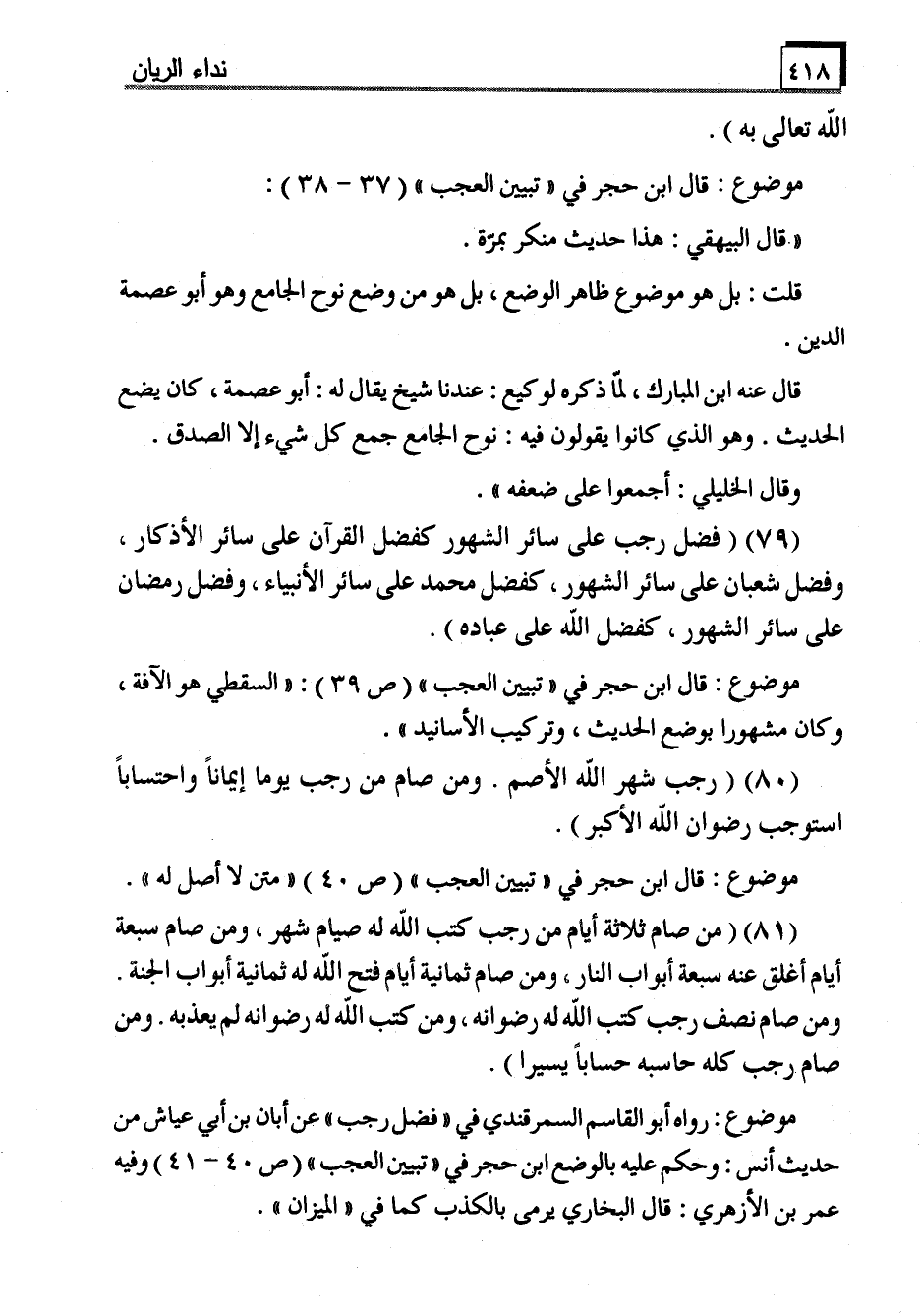 موضوع: قال ابن حجر في "تبيين العجب" (37-38) :