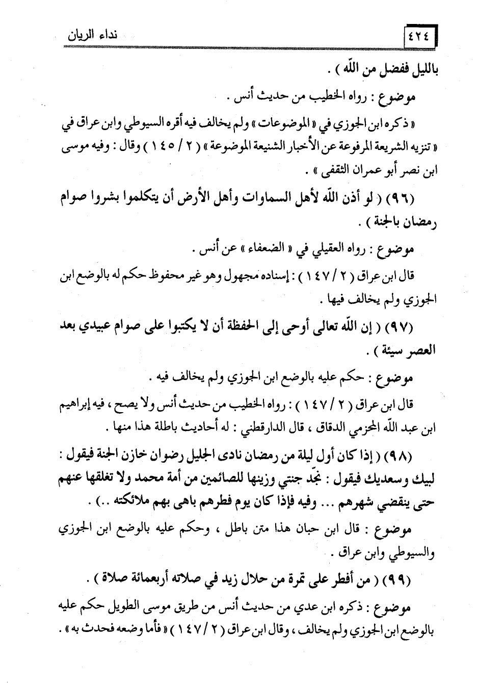 (96) (لو أذن الله لأهل السماوت وأهل الأرض أن يتكلموا بشروا صوام رمضان بالجنة) .