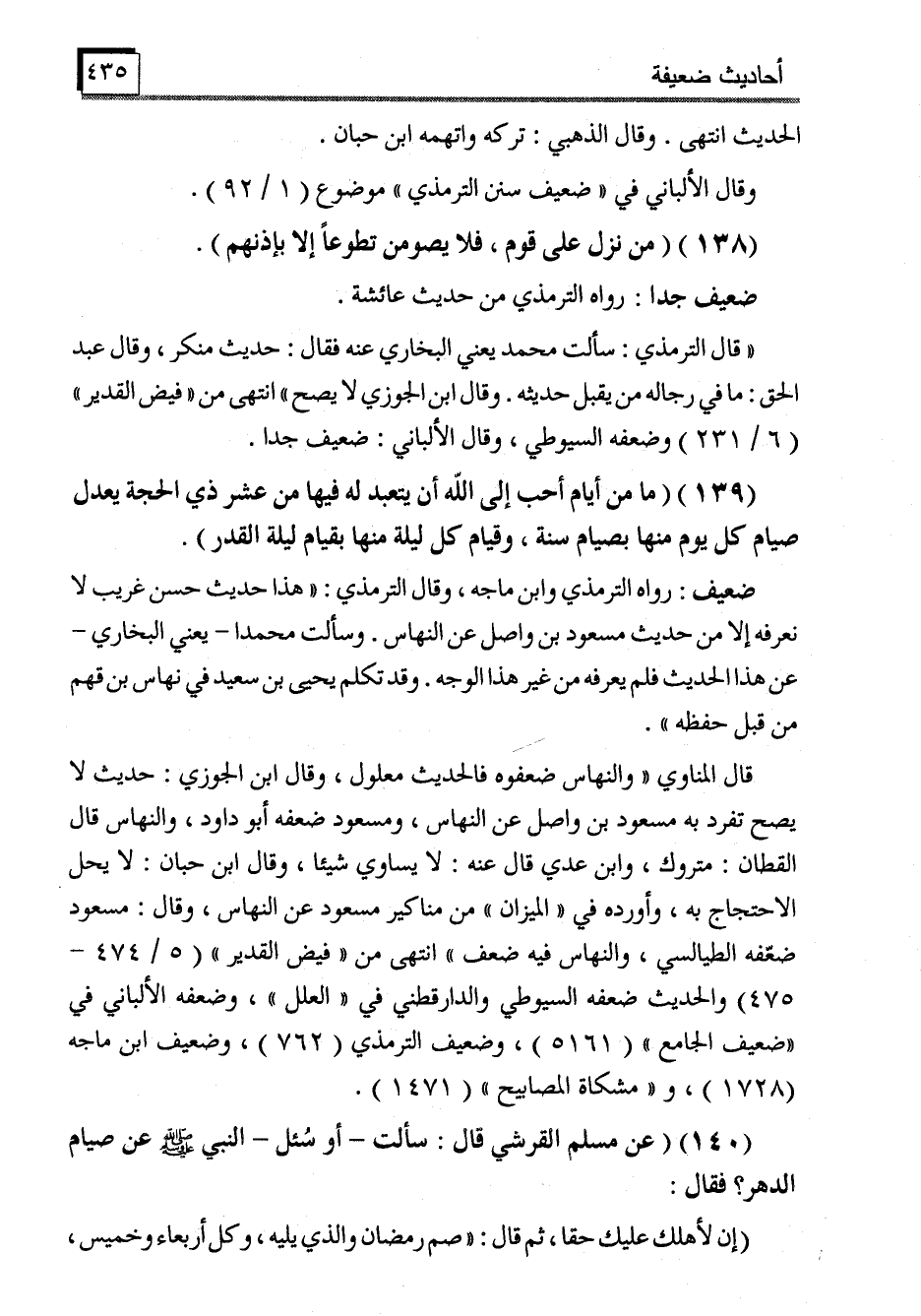 (140) (عن مسلم القرشي قال: سألت -أو سُئل- النبي - صَلَّى اللَّهُ عَلَيْهِ وَسَلَّمَ - عن صيام الدهر؟ فقال: