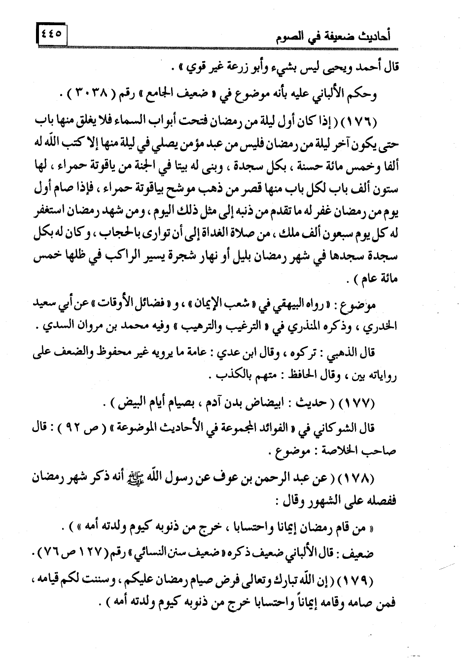 (178) (عن عبد الرحمن بن عوف عن رسول الله - صَلَّى اللَّهُ عَلَيْهِ وَسَلَّمَ - أنه ذكر شهر رمضان ففصله على الشهور وقال: