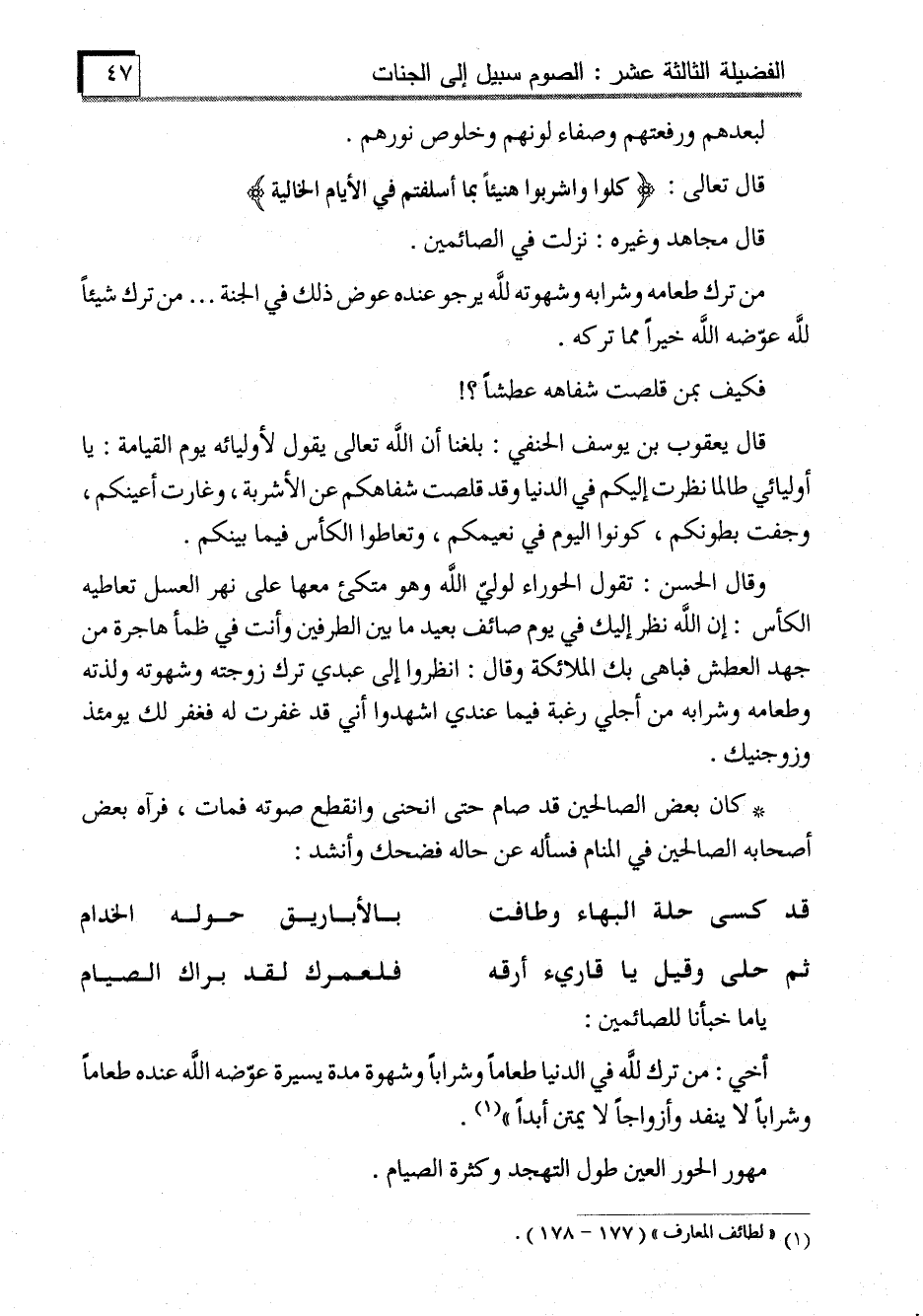 قال تعالى: (كلوا واشربوا هنيئاً بما أسلفتم في الأيام الخالية)