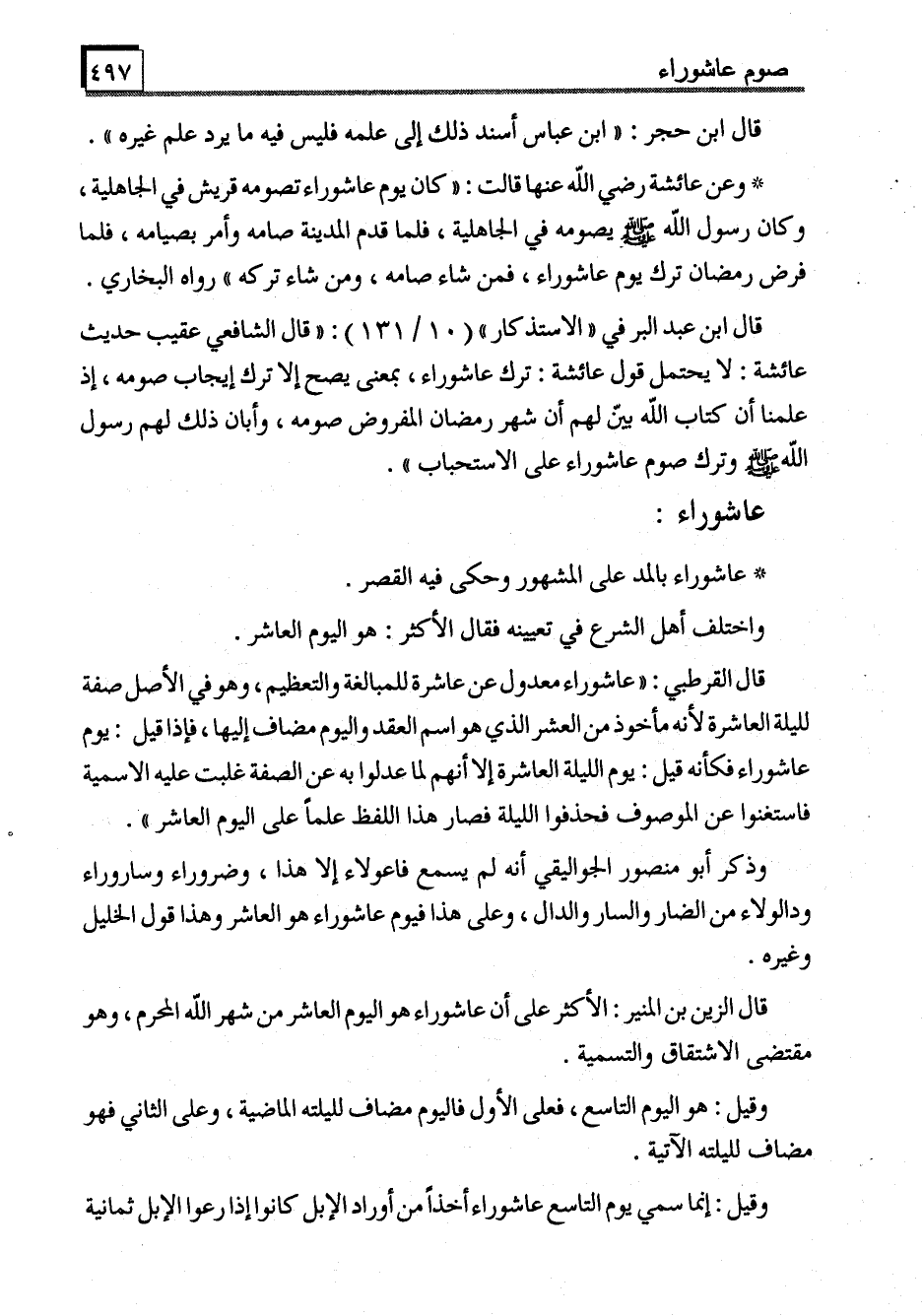 قال الزين بن المنير: الأكثر على أن عاشوراء هو اليوم العاشر من شهر الله المحرم، وهو مقتضى الاشتقاق والتسمية.