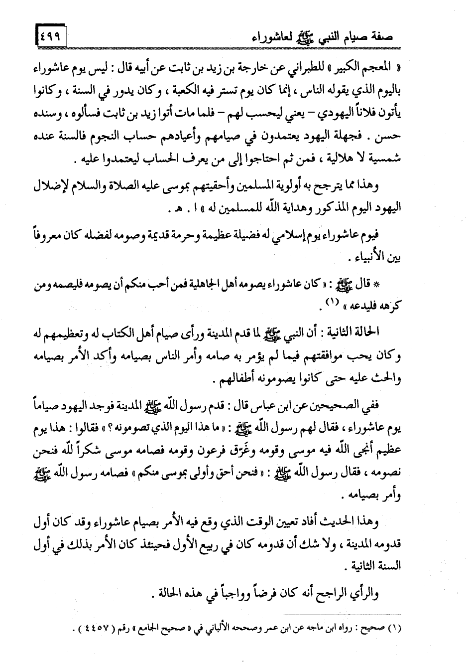 وهذا الحديث أفاد تعيين الوقت الذي وقع فيه الأمر بصيام عاشوراء وقد كان أول قدومه المدينة، ولا شك أن قدومه كان في ربيع الأول فحينئذ كان الأمر بذلك في أول السنة الثانية.