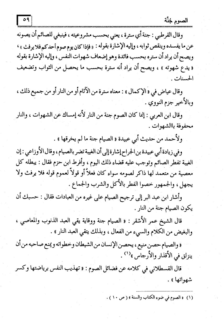 (1) "الصوم في ضوء الكتاب والسنة" (ص 10) .