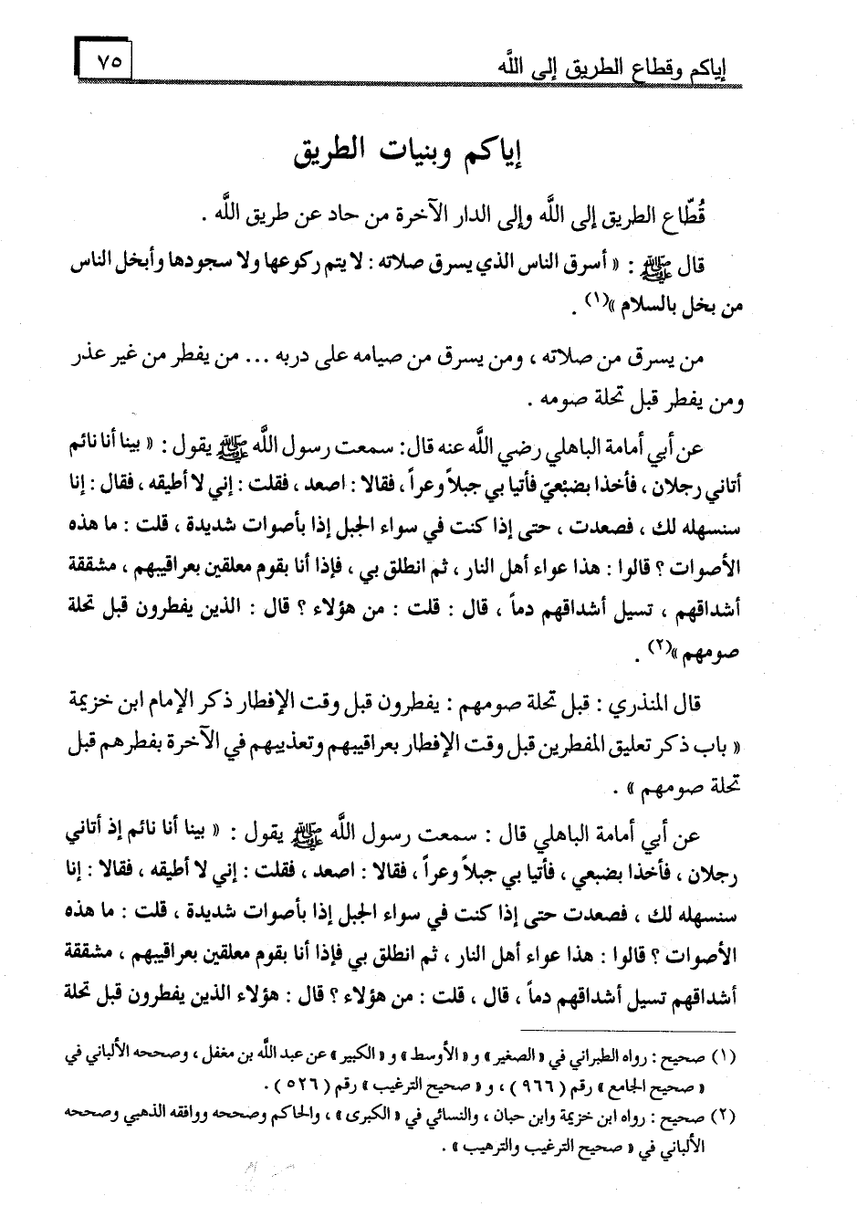 من يسرق من صلاته، ومن يسرق من صيامه على دربه ... من يفطر من غير عذر ومن يفطر قبل تحلة صومه.