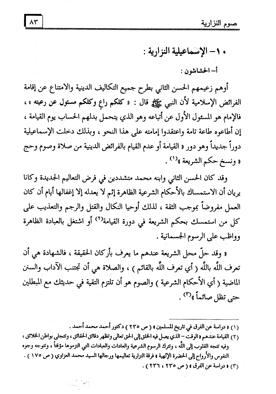 (1) "دراسة عن الفرق في تاريخ المسلمين" (ص 235) دكتور أحمد محمد أحمد.